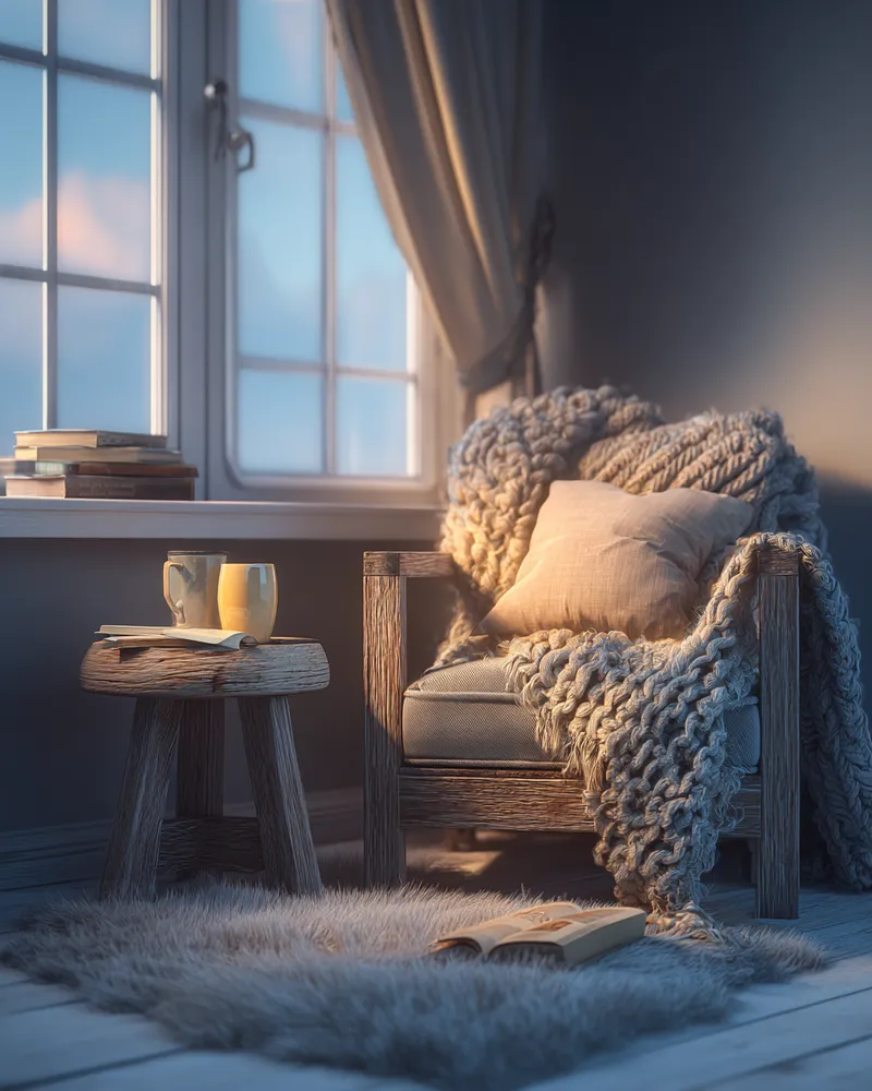 * Minimal, naturalistic decor, perhaps a small plant. 🌿
