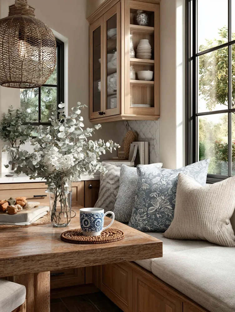 Cozy Kitchen Nooks: Elevating Warmth with Wood & Weave 🍞