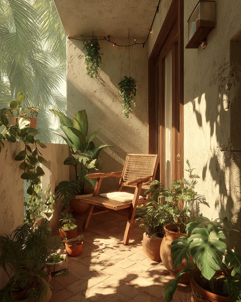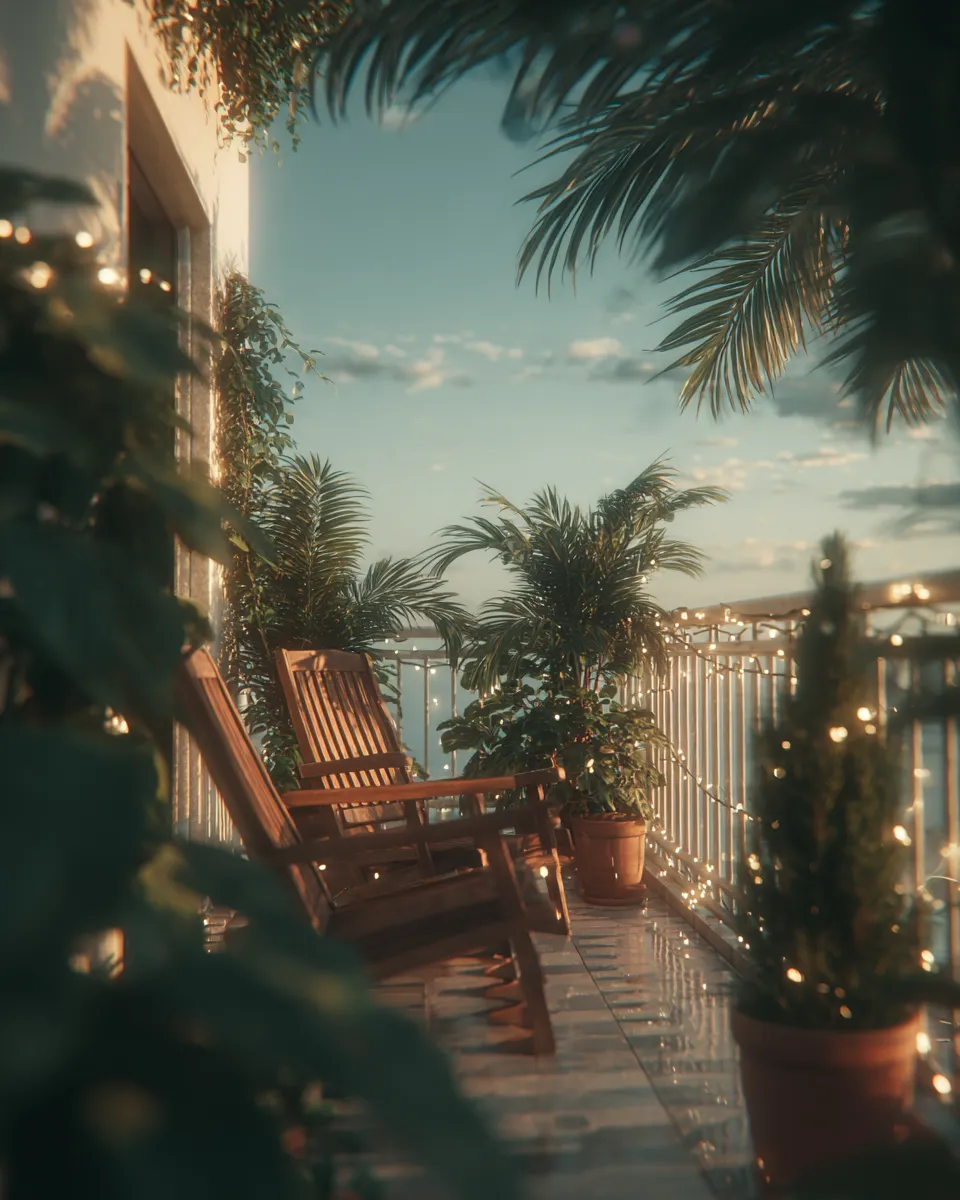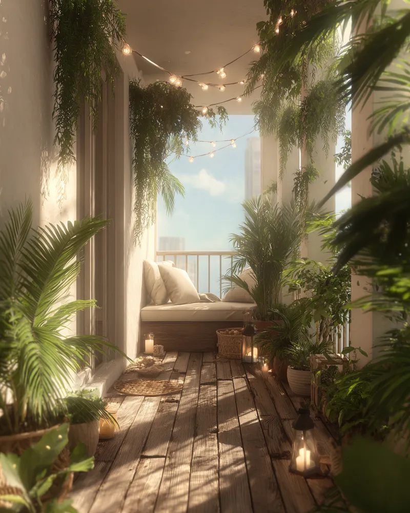 Balcony Oasis: PNW Outdoor Living with Wood & Greenery 🌲🌿