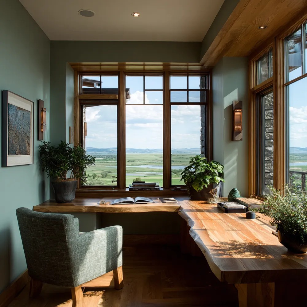 Create a home office that inspires productivity and tranquility by drawing from the essence of the American prairie – spaciousness, natural light, and organic materials. * **Natural Light Focus:** Position your desk near a window for views and sunlight. * **Earthy Color Palette:** Use muted greens, warm browns, and soft neutrals. * **Wood Elements:** A solid wood desk, shelving, or flooring. * **Comfortable Seating:** An ergonomic chair upholstered in natural fabric. * **Botanical Touches:** Potted plants to bring life and freshness indoors. Design a workspace that feels as expansive and calm as the open land. Save this for your home office inspo! ✨
