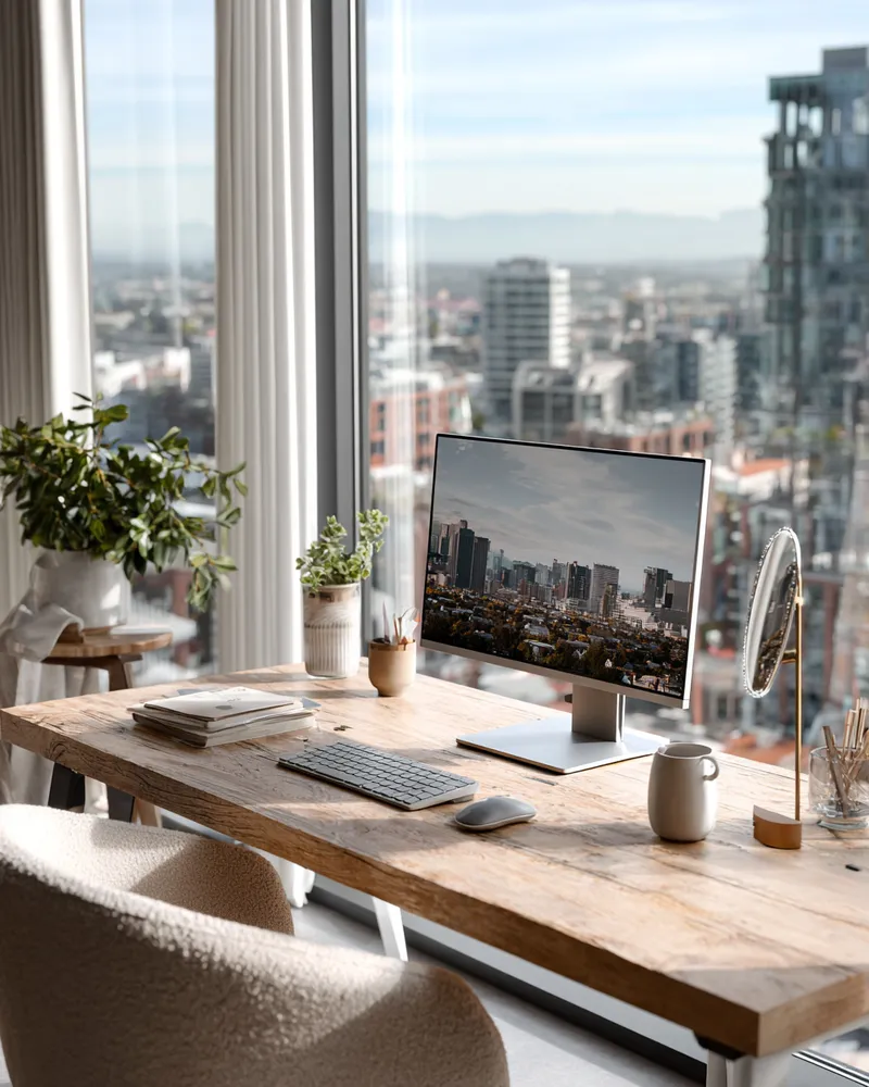 Workspace Zen: PNW Natural Light & Wood Desk 🌲💻
