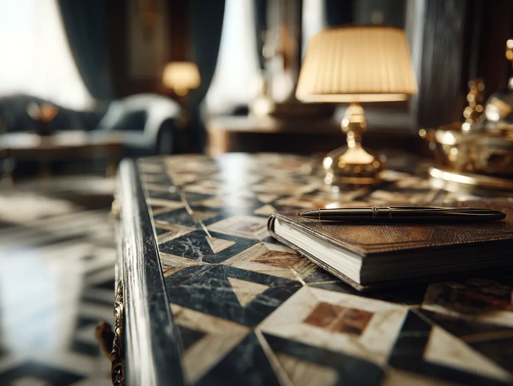 Transform your home office into a sanctuary of inspiration and focus with the elegance of marquetry. Imagine your desk surface adorned with a subtle yet sophisticated geometric wood inlay, or perhaps a personalized motif that sparks creativity. Marquetry brings a level of detail and craftsmanship that elevates your workspace beyond the ordinary. It’s about surrounding yourself with beauty and quality that inspires your best work. From simple borders to intricate patterns, let marquetry infuse your productivity zone with timeless charm. Save this for your dream home office! 💡