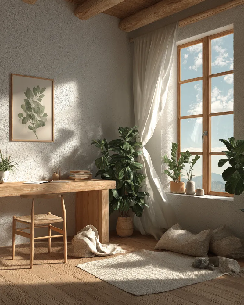 Wood Grain & Natural Light: Designing a Calming Home Office 🪵💡