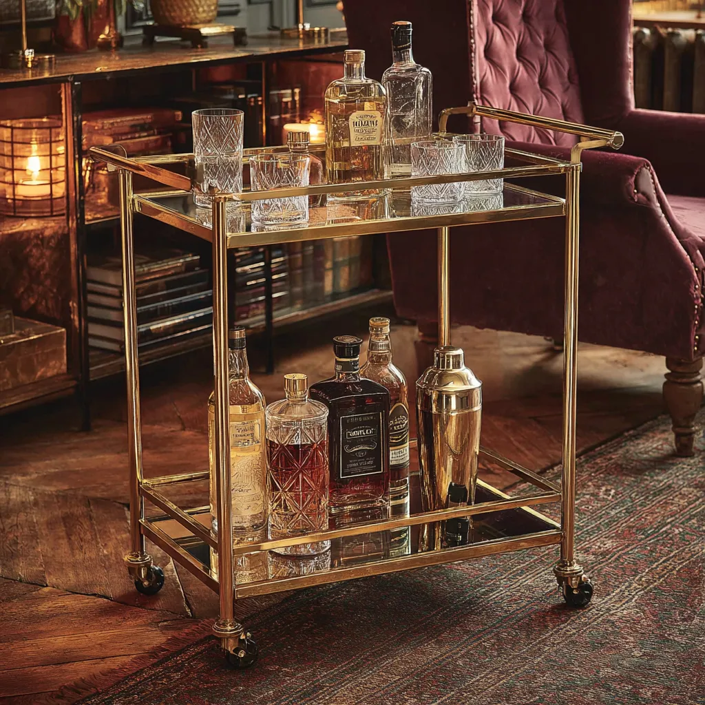 Brass Bar Cart Essentials: Style & Sip in Sophistication! 🥂