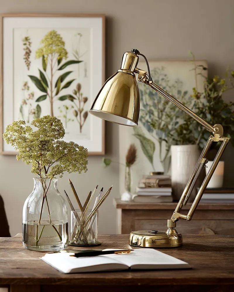 ✨ Golden Botanicals: Brass & Bloom in Your Home Office Decor! 🌸