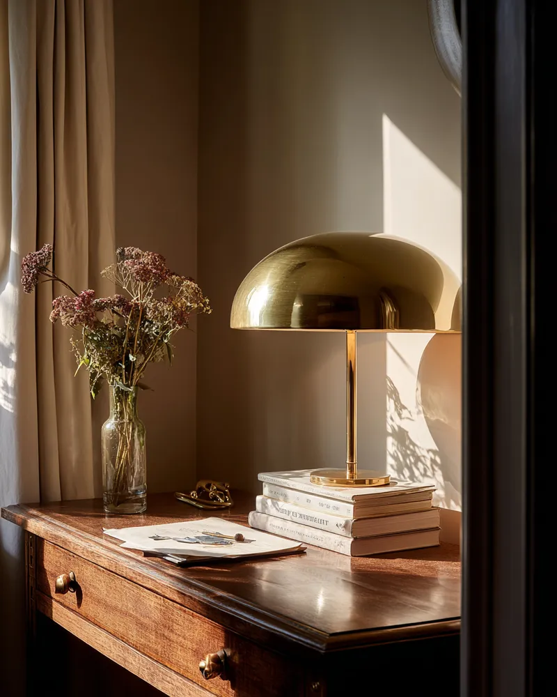 Beyond Polished: Accents of Aged Brass for a Refined Home Office 💼