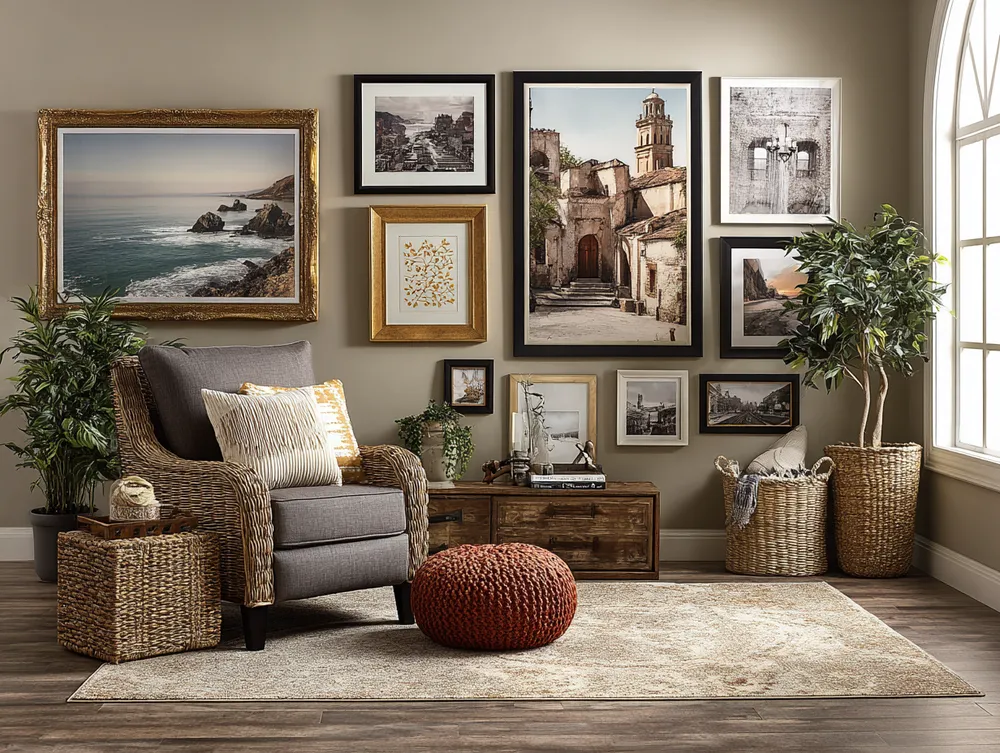 Ready to turn blank walls into a visual narrative? Gallery walls are your answer! It’s all about curating your favorite pieces – from art prints to personal photos – and arranging them harmoniously. 🖼️