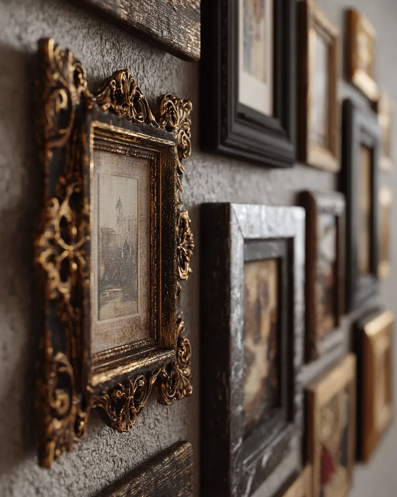 Save this for your next wall art project! #GalleryWallIdeas#FramedArtIdeas#WallArtInspo#HomeDecorIdeas#InteriorStyling#PictureWall#OrnateFrames#DesignTips#DecorInspo#CuratedHome