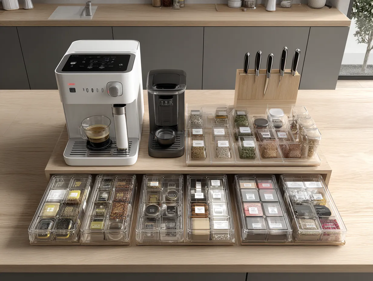 Tired of a cluttered kitchen? Even small kitchens can be beautifully organized! ✨ Invest in drawer dividers and shelf risers to maximize cabinet space. Utilize wall space with magnetic knife strips or hanging pot racks. Opt for multi-functional kitchen gadgets. Transparent storage containers allow you to see what you have, reducing waste. Clear countertops by storing appliances away or opting for sleek, compact models. Keep only essential items visible. Embrace a minimalist approach to a more peaceful cooking experience! 🍳