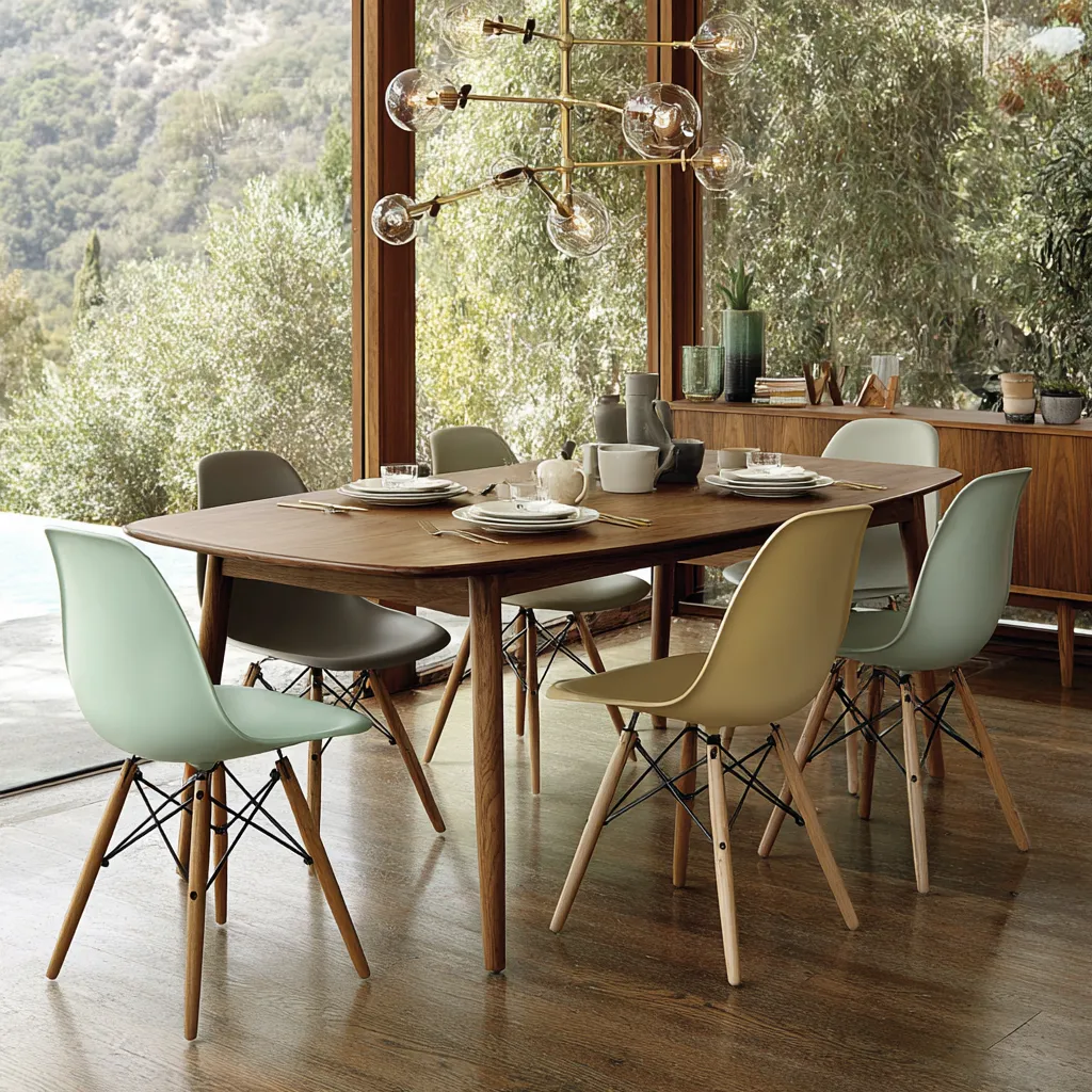 Opt for a dining table with clean, tapered legs, perhaps in a beautiful walnut or teak finish. Pair it with iconic chairs that boast comfortable, sculptural silhouettes. Think molded plastic, wood accents, or upholstered seats. 🪑