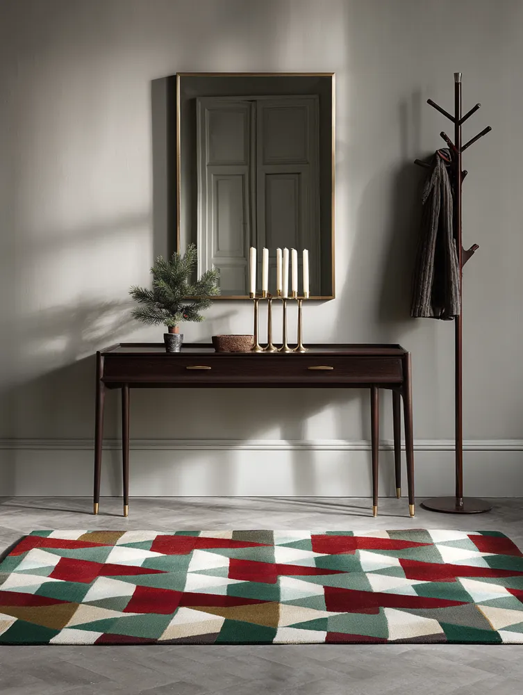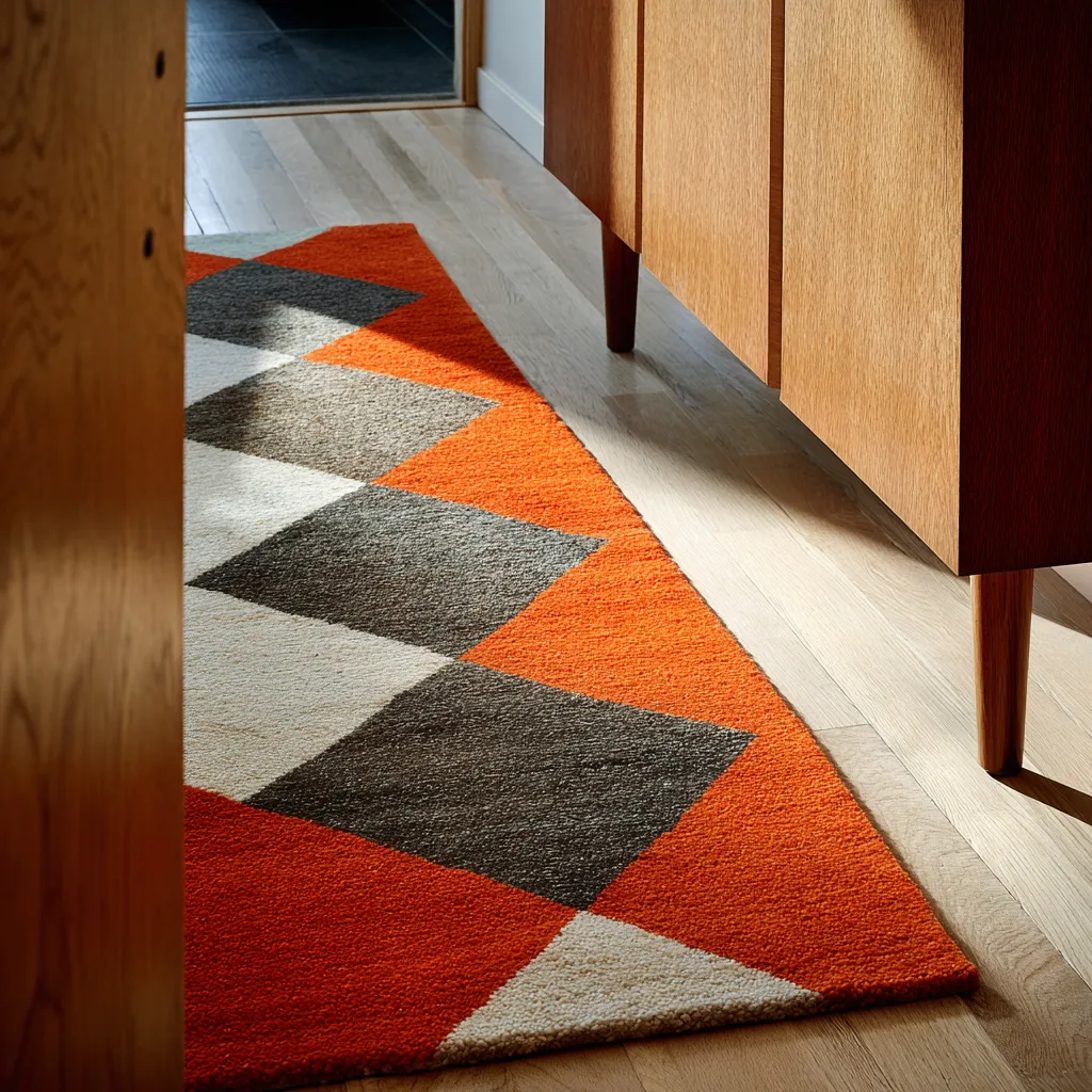 Save this for the perfect MCM rug selection! #EntrywayRugIdeas#MidCenturyEntrywayRugIdeas#MCRugInspo#HomeDecorTips#InteriorStyling#MidCenturyModernDecor#GeometricRugs#EntrywayDecor#DesignInspiration#FlooringIdeas