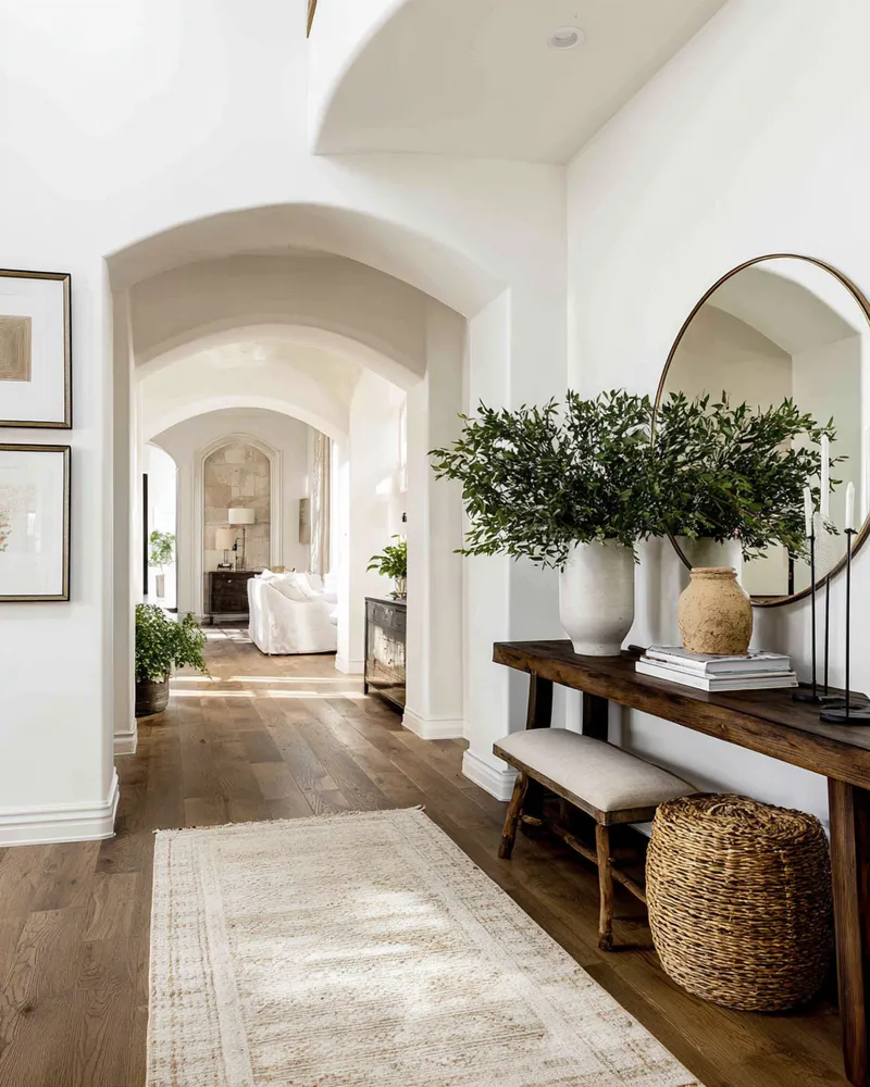 Materials like wool offer durability and comfort underfoot. A good size rug will define the entryway and protect your flooring. Don't be afraid to mix and match textures! 🧵