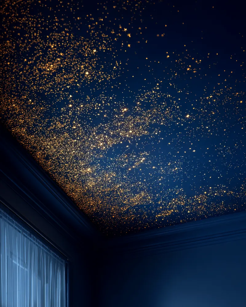 Don't forget the fifth wall! Your ceiling is a blank canvas waiting for some artistic expression. 🖌️ As someone who adores expressive paint applications, I believe a painted ceiling can completely transform the feel of a room, adding unexpected depth and personality. Here are some creative painted ceiling ideas: * **Faux Wood Beams:** Add rustic charm and architectural interest. * **Deep, Enveloping Color:** Dark blues or greens can create a cozy, intimate feel. * **Soft Gradient:** A subtle ombré effect that draws the eye upward. * **Hand-Painted Starry Sky:** Perfect for bedrooms or whimsical spaces. * **Subtle Stenciled Patterns:** Delicate motifs for understated elegance. Thinking outside the box for your ceiling can lead to truly magical results! Save this for some ceiling design inspiration. 💫