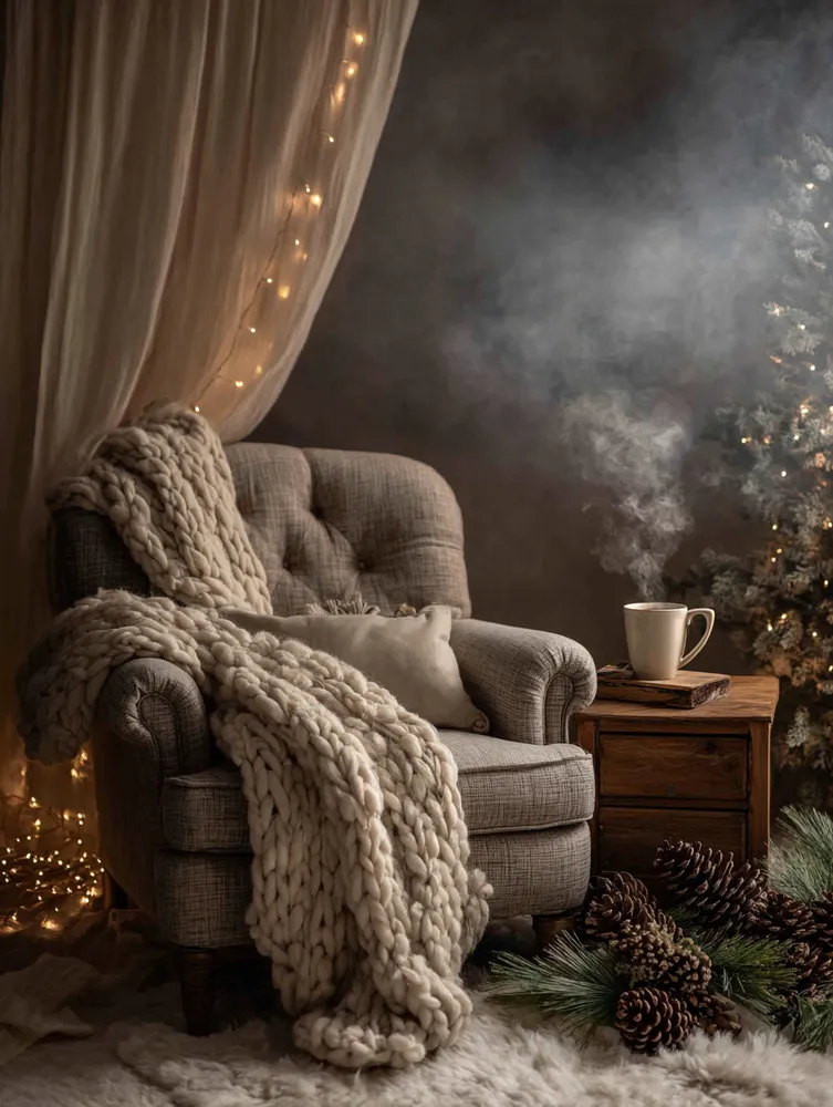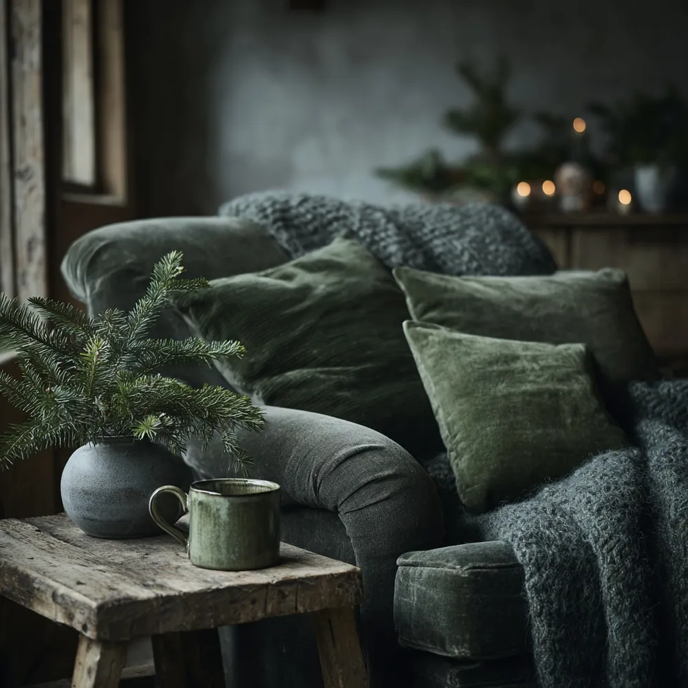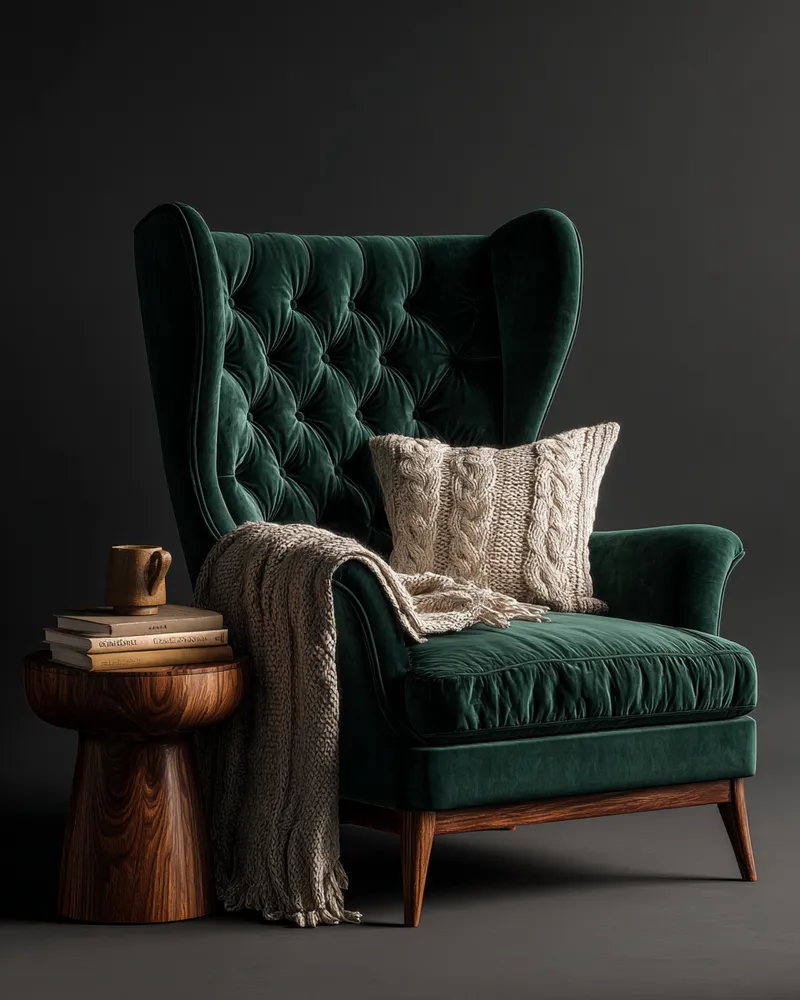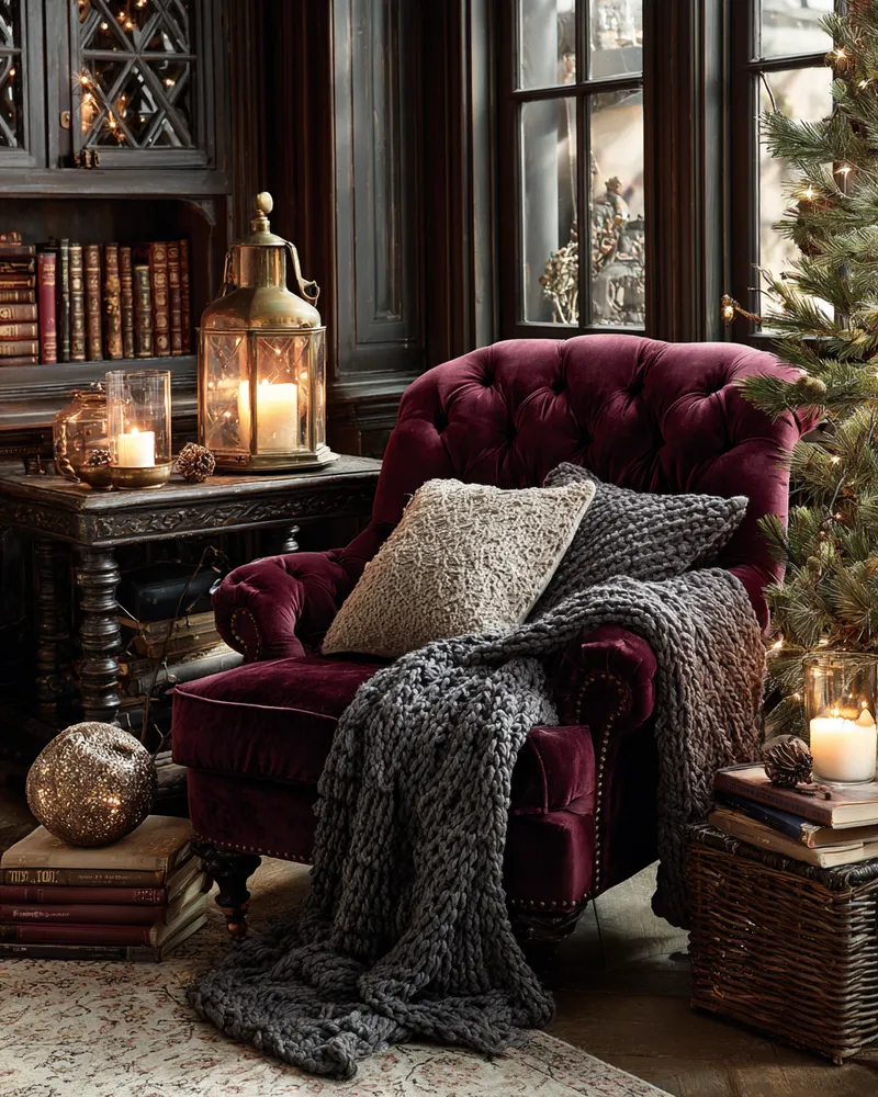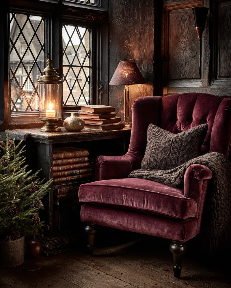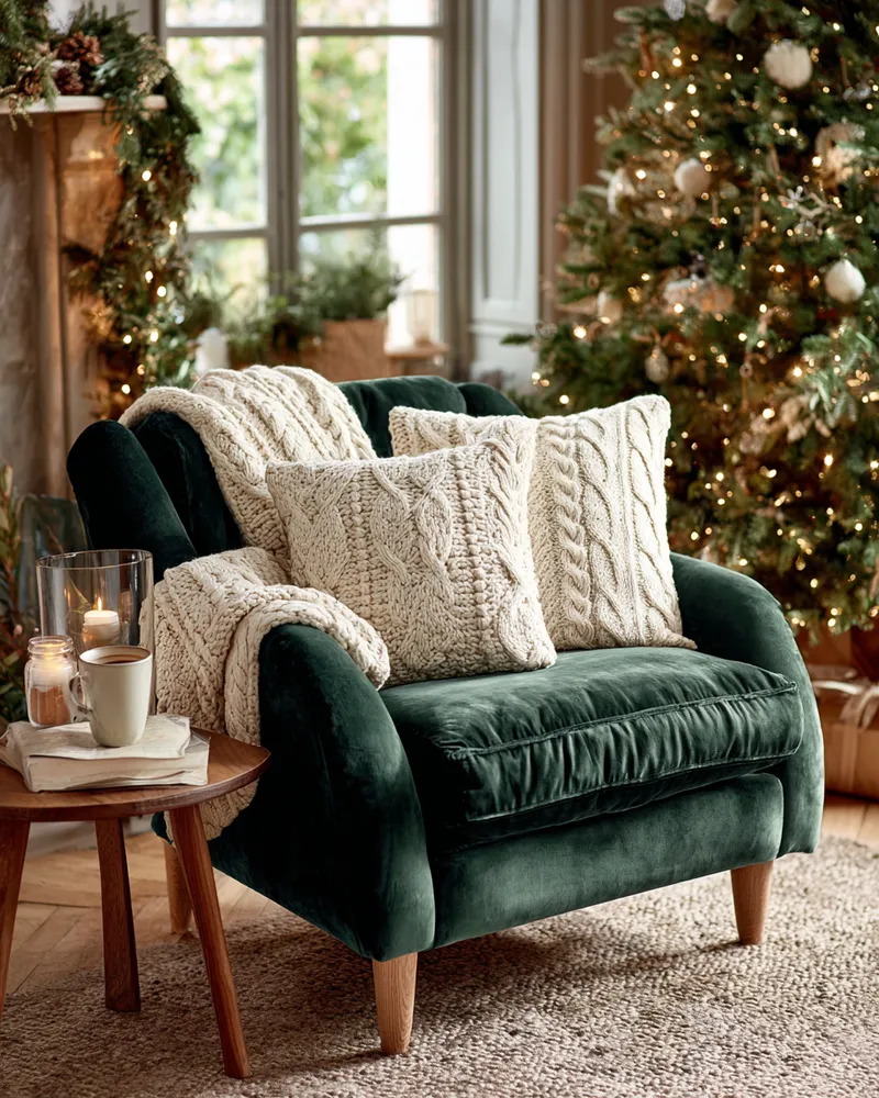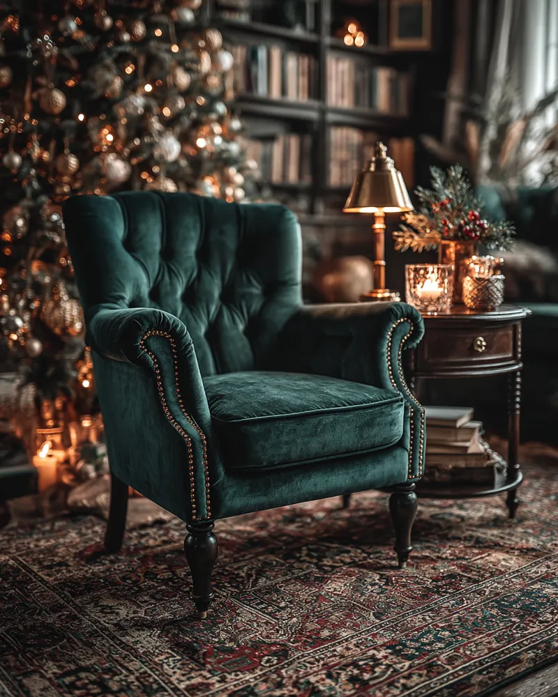 The Cozy Corner Curator: Velvet & Wood for Your Christmas Nook! 🛋️🎄