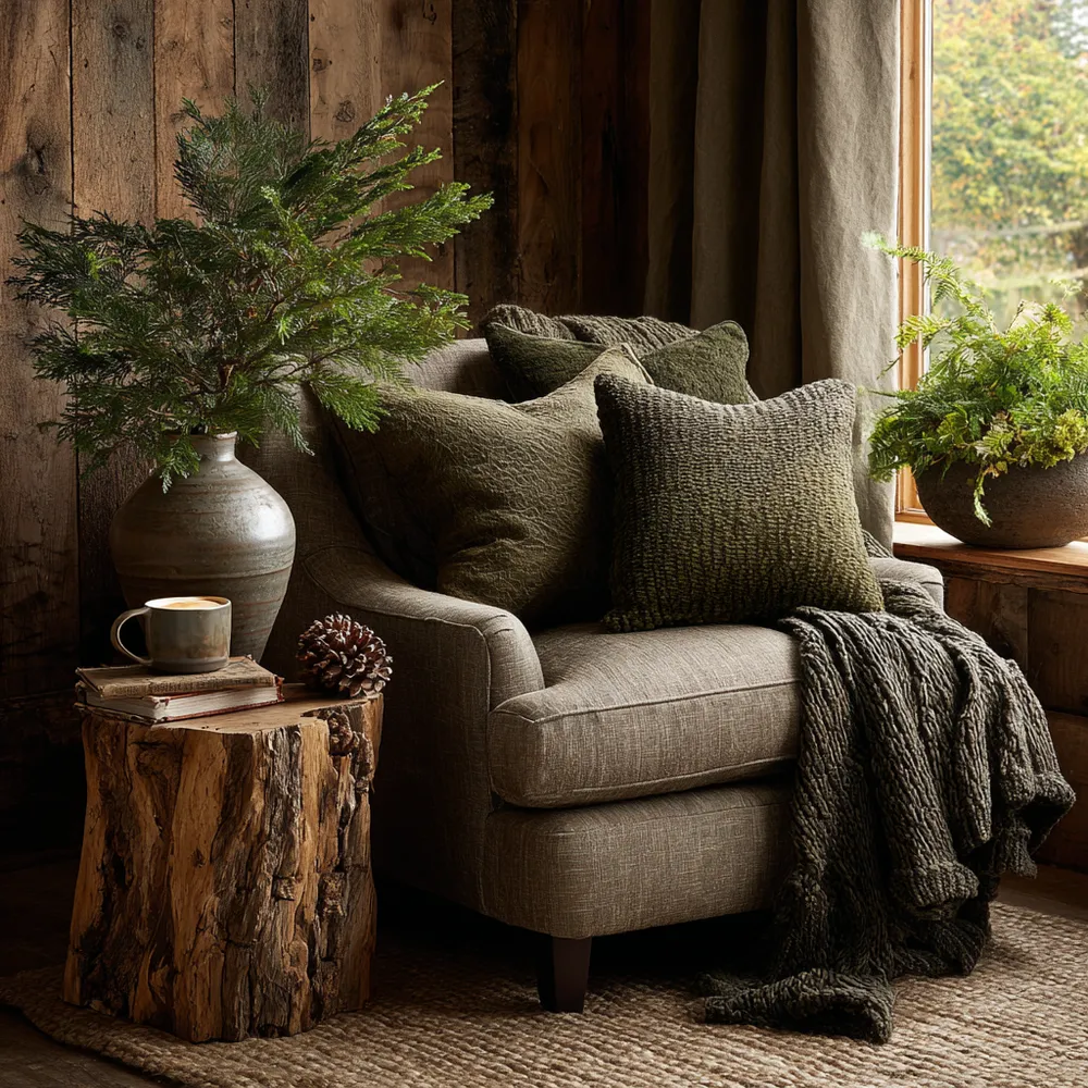 Reading Nook Comfort: PNW Wood Accent & Cozy Textiles 🌲📚