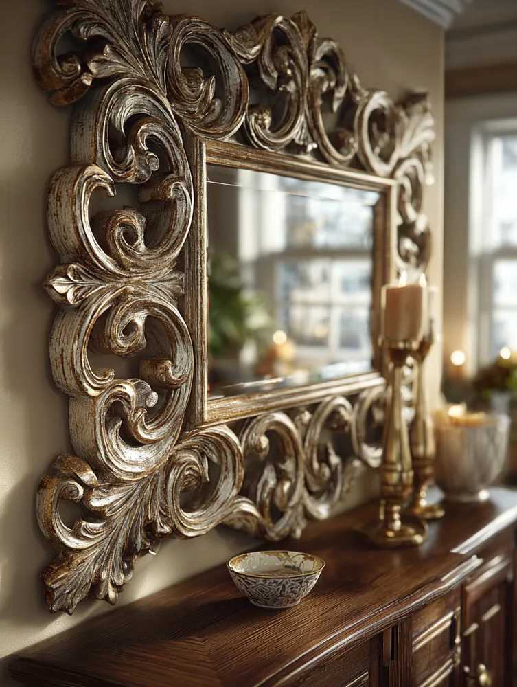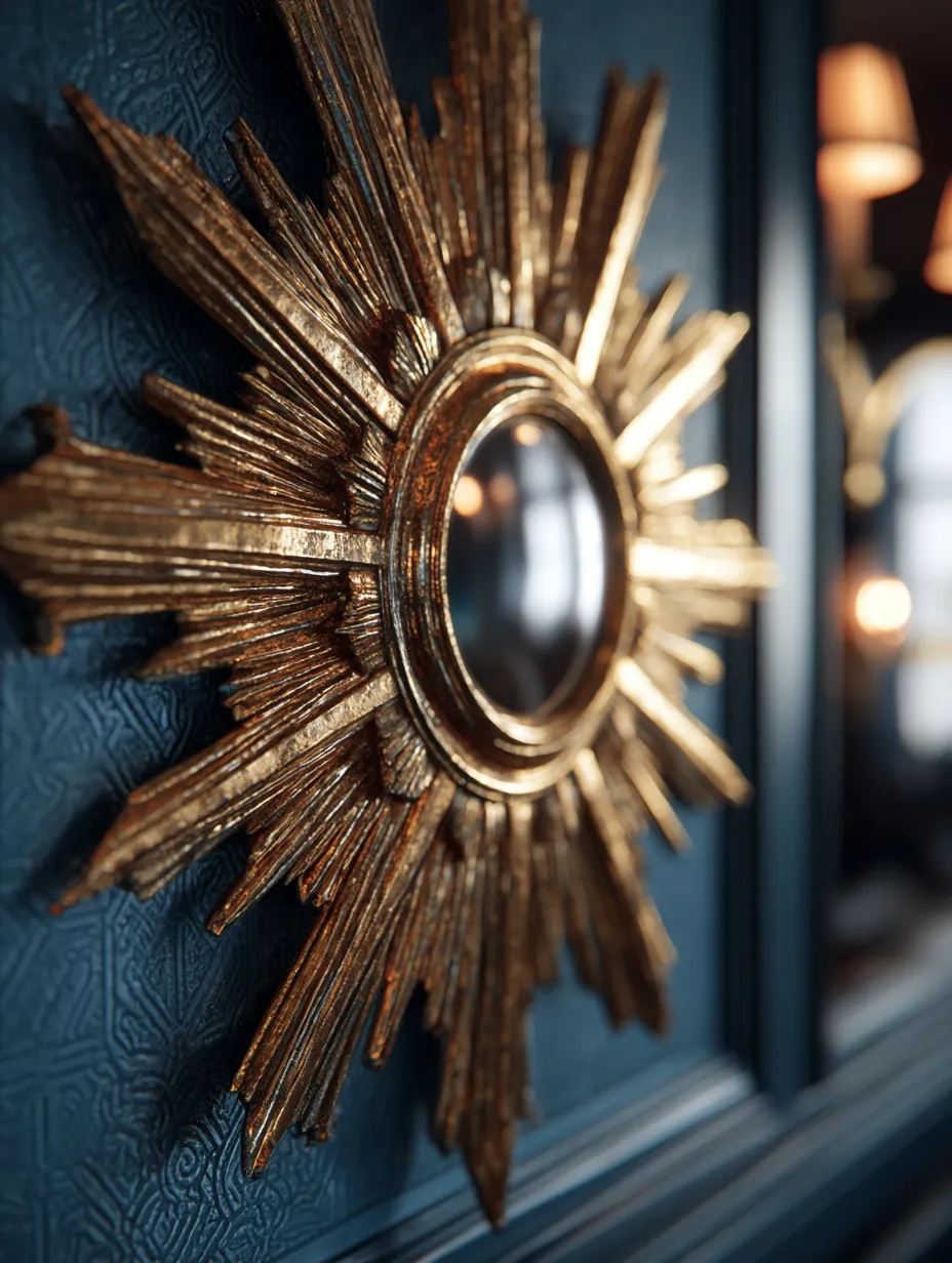 A statement mirror is an Art Deco essential, adding glamour and amplifying light. Think beyond the simple frame! Iconic Art Deco mirrors feature geometric sunburst designs, stepped borders, or bold metal accents like brass and chrome. They can be round, rectangular, or even star-shaped. Imagine a sunburst mirror above a console table in your entryway or a large, beveled mirror as a focal point in your living room. These pieces aren't just functional; they are works of art that elevate any space. Where would you place an Art Deco mirror? 🌟 #MirrorIdeas#ArtDecoIdeas#HomeAccessoriesIdeas#DecorAccentsIdeas#InteriorDetailIdeas#ArtDecoMirror#StatementMirror#SunburstMirror#GlamDecor#InteriorDesignTips