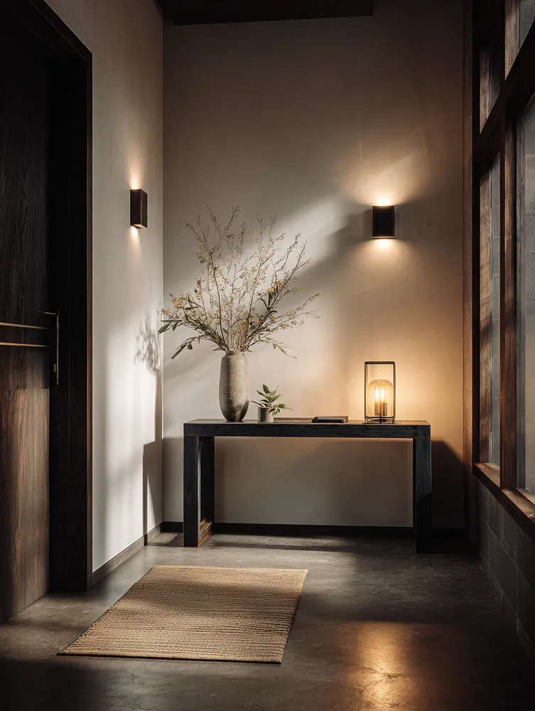 Transform your entryway into a serene sanctuary that whispers 'welcome home.' For a Japandi vibe, think clean lines and natural textures. A simple wooden console, a statement ceramic vase with a single branch, and a woven mat instantly set a peaceful tone. 🌿 Minimize clutter with hidden storage solutions to maintain that intentional, uncluttered feel. Focus on mindful decorating and the beauty of negative space. This intentional approach creates a grounding transition into your personal haven. ✨