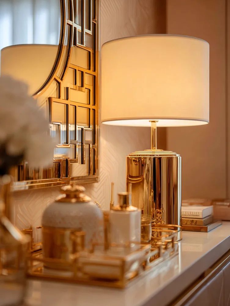 Think statement chandeliers, intricate mirror frames, sleek table legs, and decorative trays. These elements add depth and a touch of irresistible luxury without overwhelming the space.