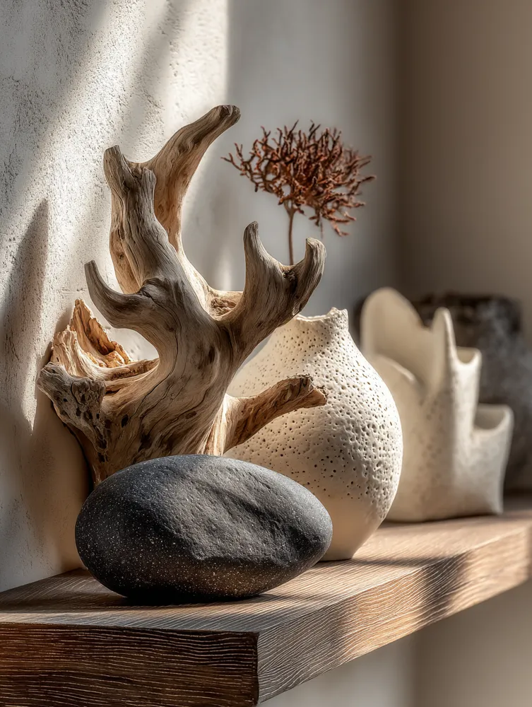 Draw inspiration from the natural sculptures found in the wild – gnarled branches, smooth stones, and eroded formations. Incorporate these sculptural elements into your decor for a unique and grounded feel. Add these accents: * **Driftwood or Root Art:** Unique, organic shapes add character. * **Stone Sculptures:** Smooth, abstract forms bring a sense of timelessness. * **Ceramic Vessels with Organic Shapes:** Handmade pieces with visible texture. * **Hand-Carved Wood Objects:** Pieces with a story and natural tactility. Let your decor tell a story of natural artistry. Save this for statement pieces inspired by the earth! 🗿