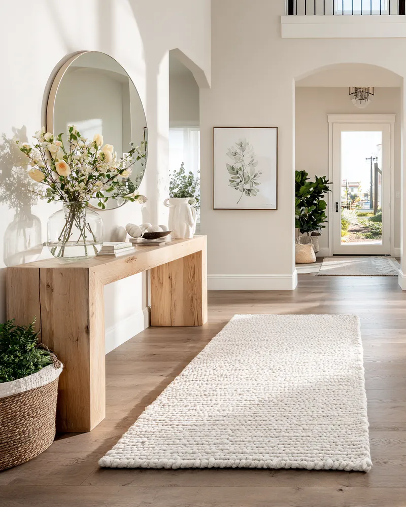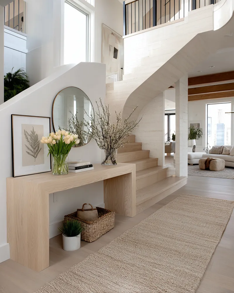 * **Material Play:** Mix natural wood tones with light linen and ceramics.
