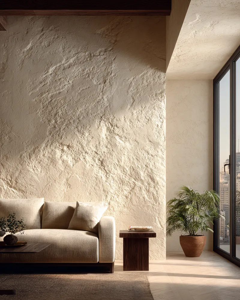 * **Textured Plaster/Microcement:** Create a subtly uneven, tactile surface for a grounded feel.