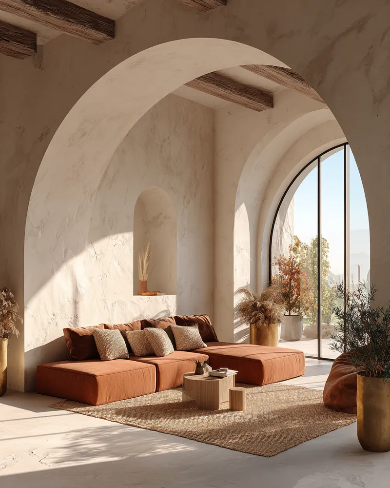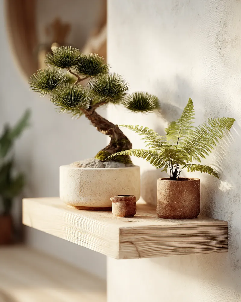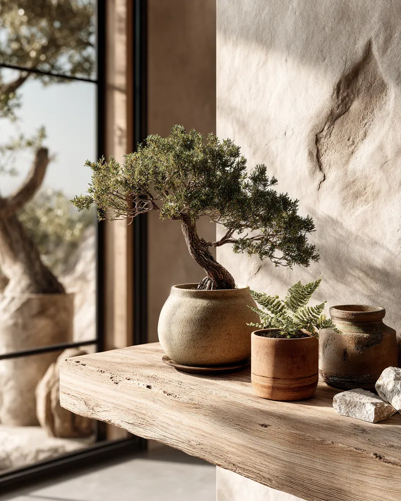 Even in arid landscapes, life finds a way. Incorporate drought-tolerant plants that evoke the spirit of the desert into your home. Succulents, cacti, snake plants, and ZZ plants are perfect choices for their sculptural forms and low-maintenance needs. Place them in simple terracotta or ceramic pots to complement your earthy palette. These green accents add life and a touch of organic beauty without overwhelming your minimalist space.