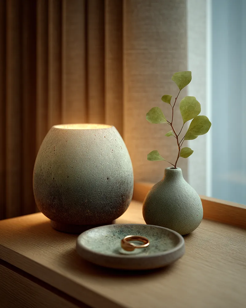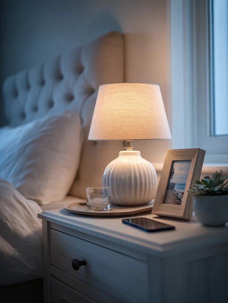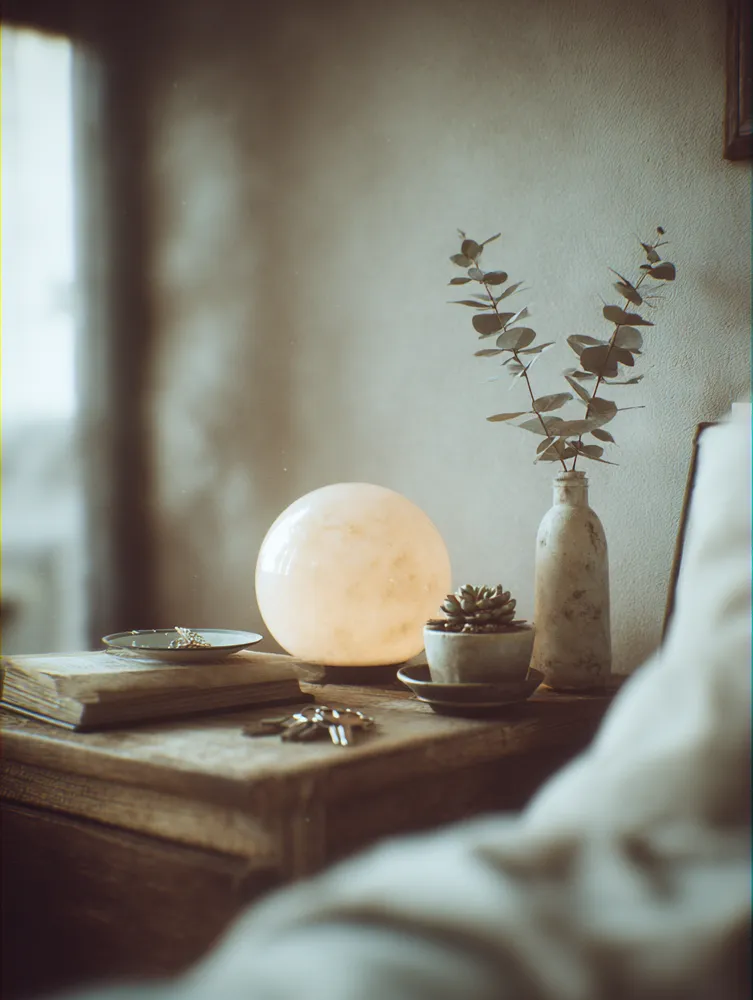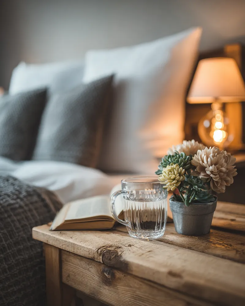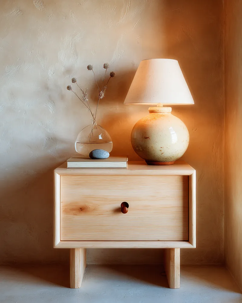 Your nightstand is a small but significant space for creating calm before sleep and ease upon waking. In a desert-inspired room, keep it simple and functional. A minimalist wooden nightstand or a small carved stool works beautifully. Adorn it with a warm-toned lamp, a favorite book, and perhaps a small succulent or a naturally scented candle. The goal is a serene, uncluttered surface that promotes rest. ✨