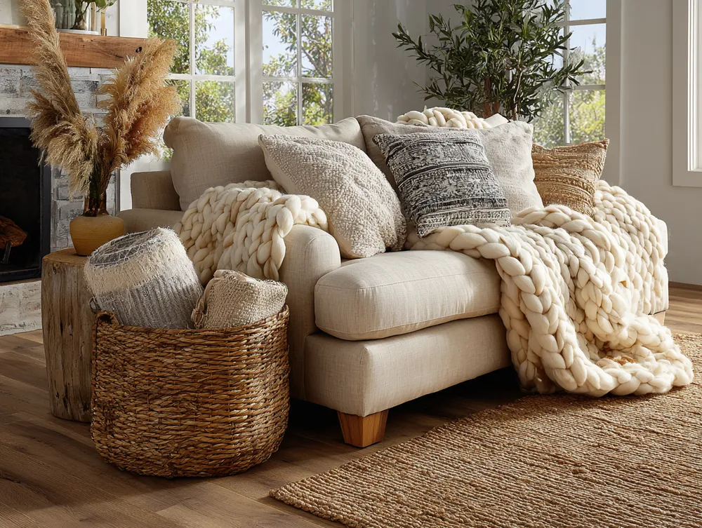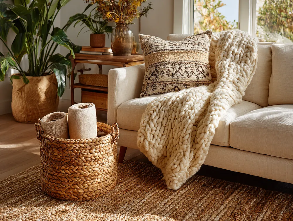 🌿 Luxurious throws: The final layer of expressive comfort.