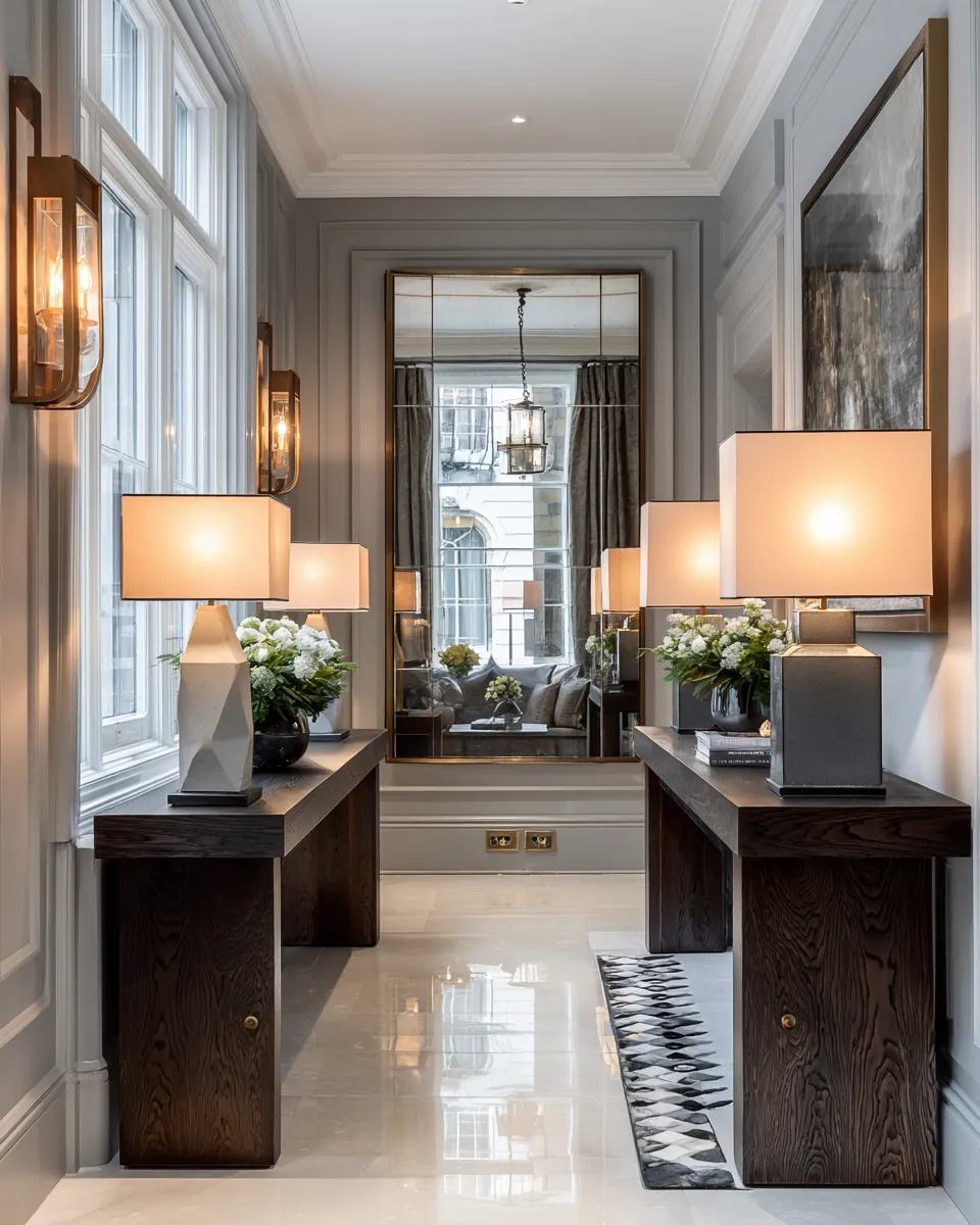 First impressions matter, and a symmetrical entryway sets a tone of calm order. For The Geometric Guru, this means intentional placement and repeating elements that guide the eye. 🔶