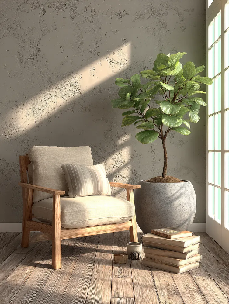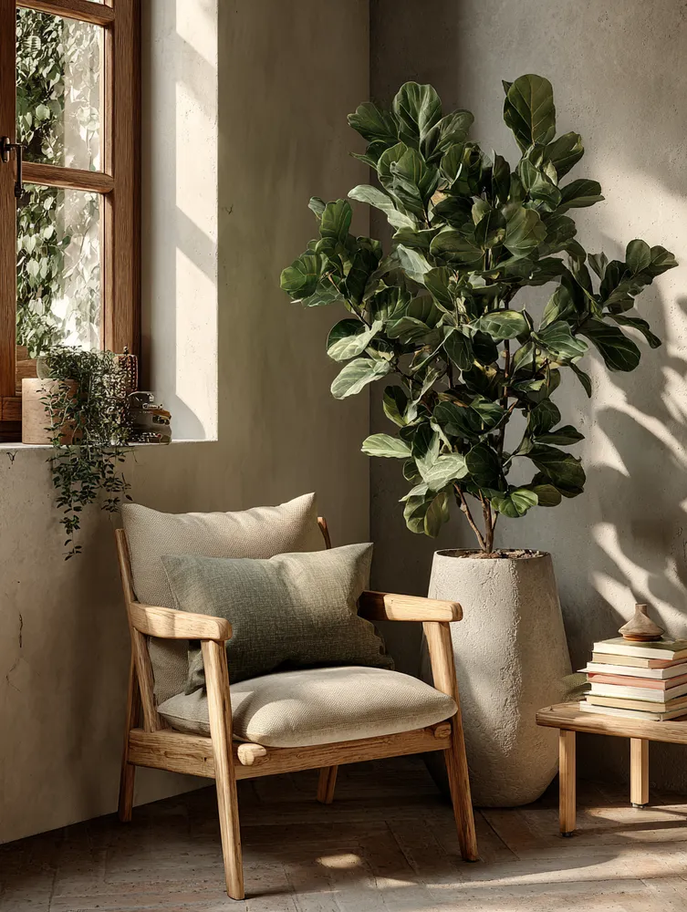 Plants are vital in Japandi design, connecting your interior with the natural world and adding life and calm. Choose plants with simple, elegant forms. Consider Fiddle Leaf Figs, Snake Plants, or various small bonsai trees. 🪴 Display them in minimalist ceramic pots or simple, natural wood planters. Grouping plants strategically can create beautiful focal points. Even a single, perfectly placed branch in a vase can bring a sense of tranquility. Let greenery breathe life into your serene spaces and enhance the feeling of well-being. #JapandiPlants#ArchitecturalAlchemy#JapandiPlantIdeas#IndoorPlants#JapandiDecorIdeas#BiophilicDesign#GreenLiving#PlantDecor#HomeGardening#InteriorJungle#NaturalBeauty