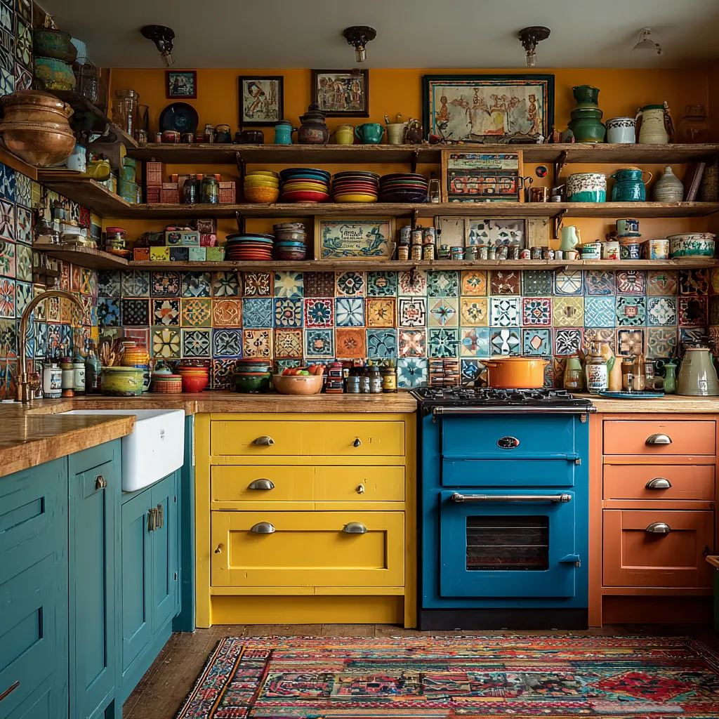 Tired of bland kitchens? Let's go full maximalist! 🤩 Your kitchen can be a canvas for bold patterns, vibrant colors, and unique collections. Think patterned tiles, statement wallpaper on an accent wall, and eclectic open shelving displaying colorful ceramics and art. Mix different metal finishes, layer rugs, and don't shy away from quirky decor pieces. It’s about joy, personality, and embracing abundance! Save this for a kitchen that's anything but ordinary! ✨ #MaximalistKitchenIdeas#KitchenDesign#BoldKitchen#PatternPlay#EclecticDecor#KitchenInspo#ColorfulHome#HomeDecor#StatementKitchen#PersonalityInDecor