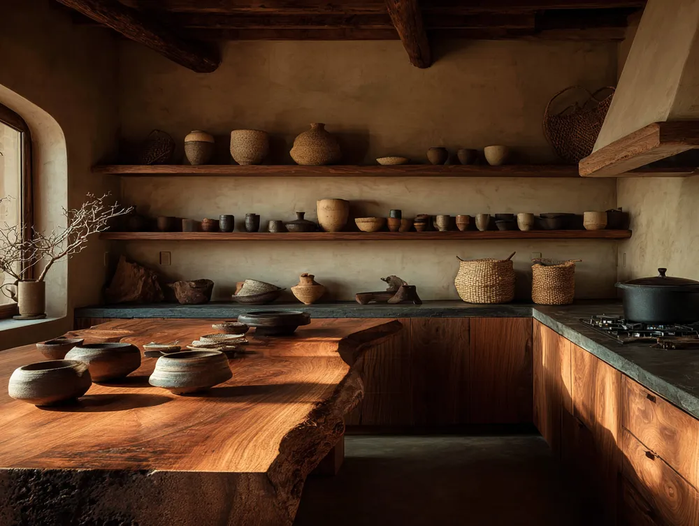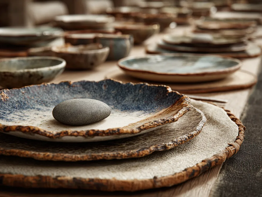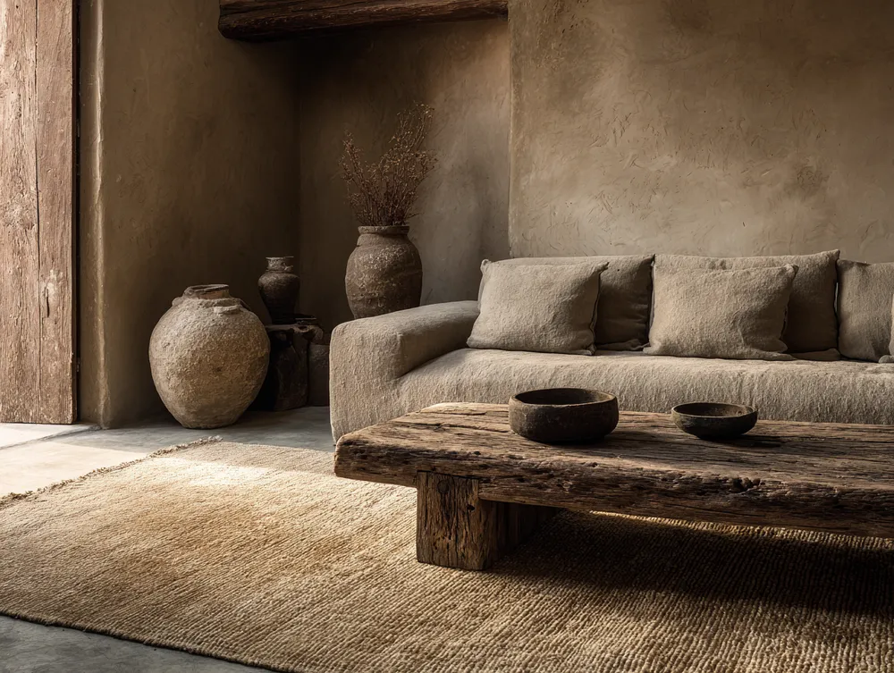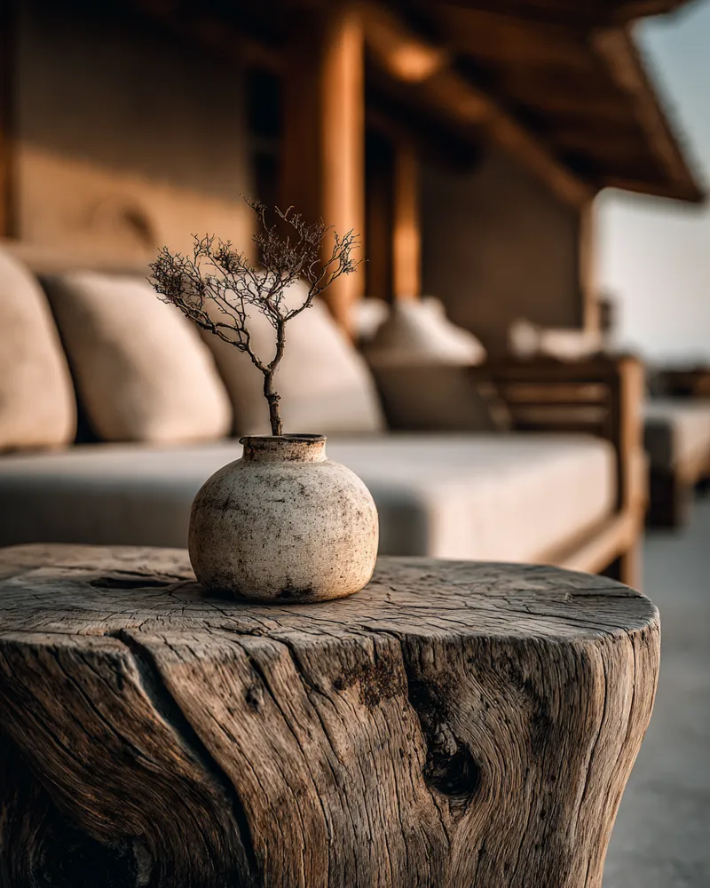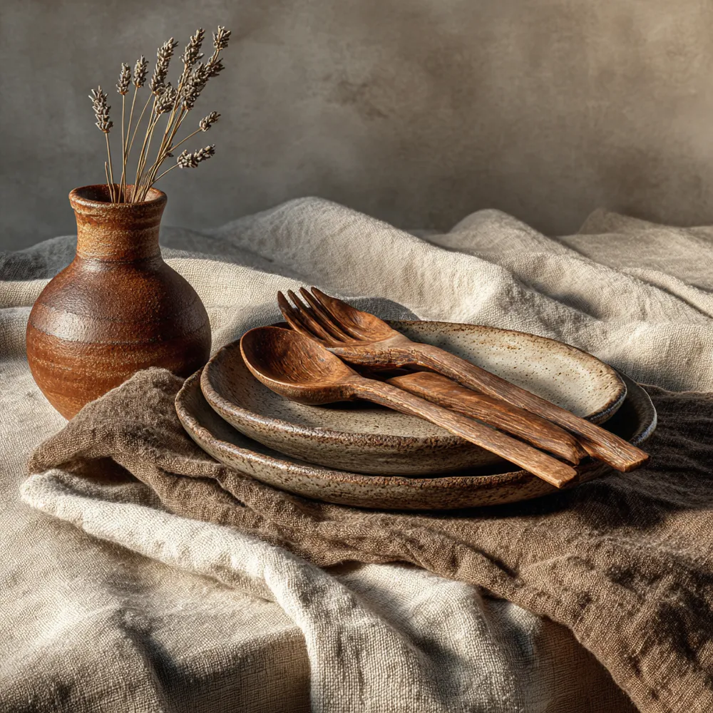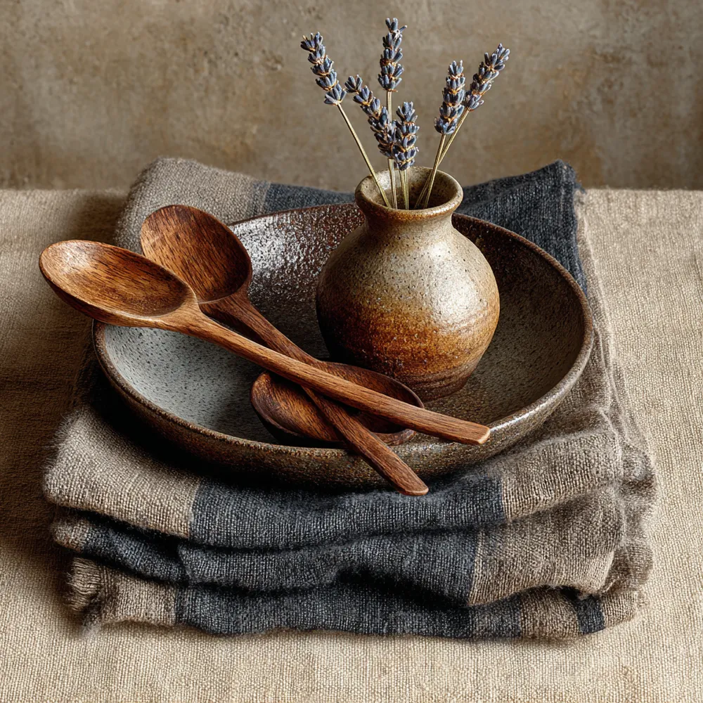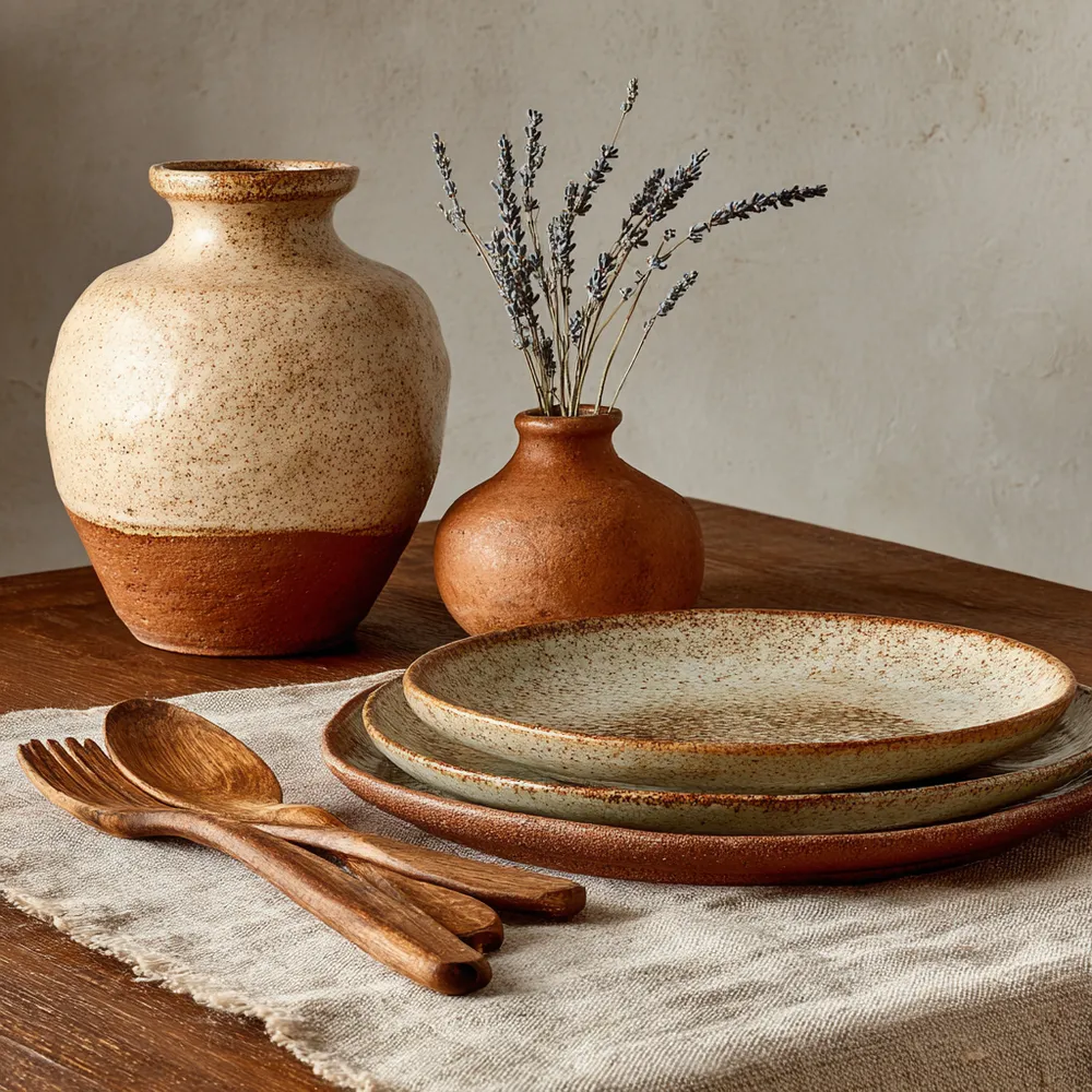 - **Natural Materials:** Earthenware ceramics, unpolished wood, natural stone.