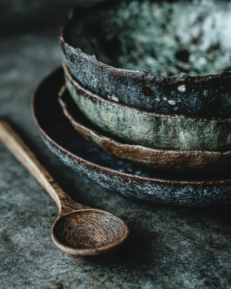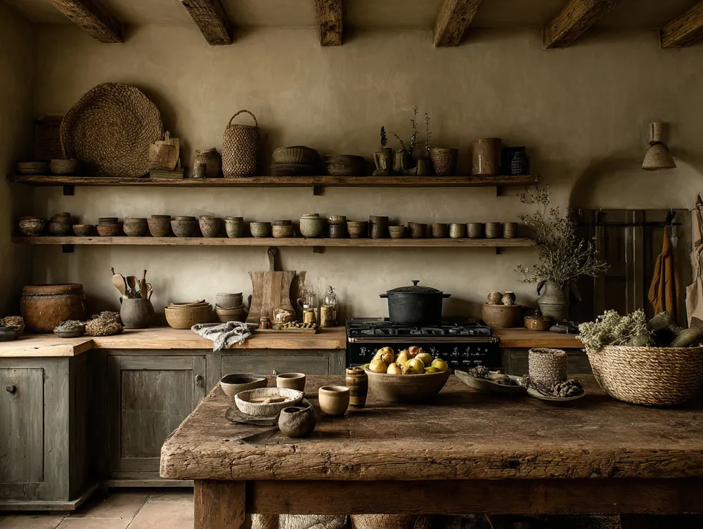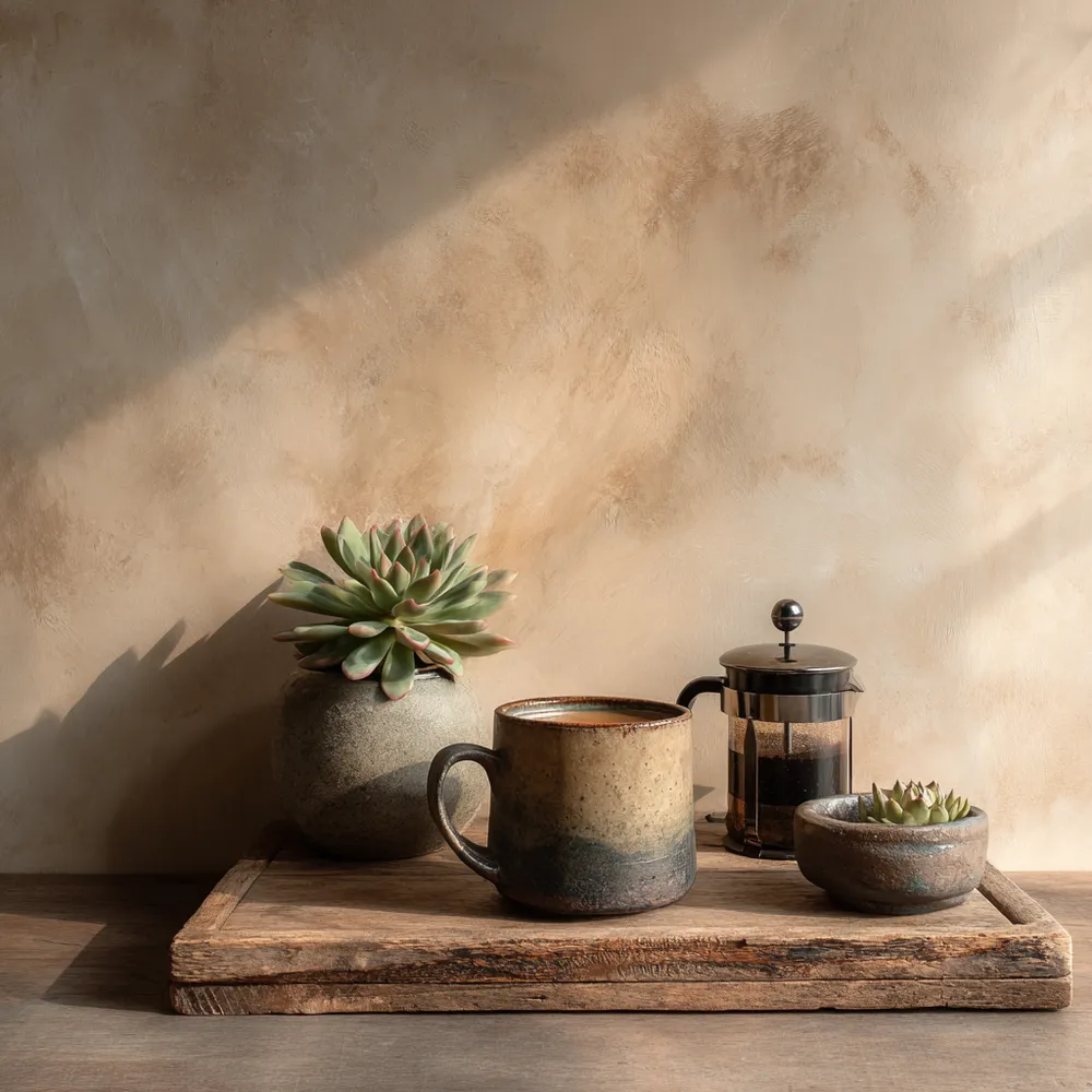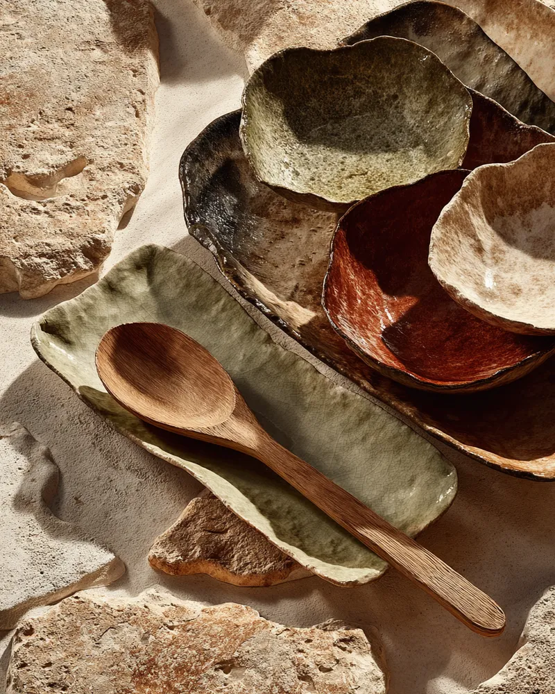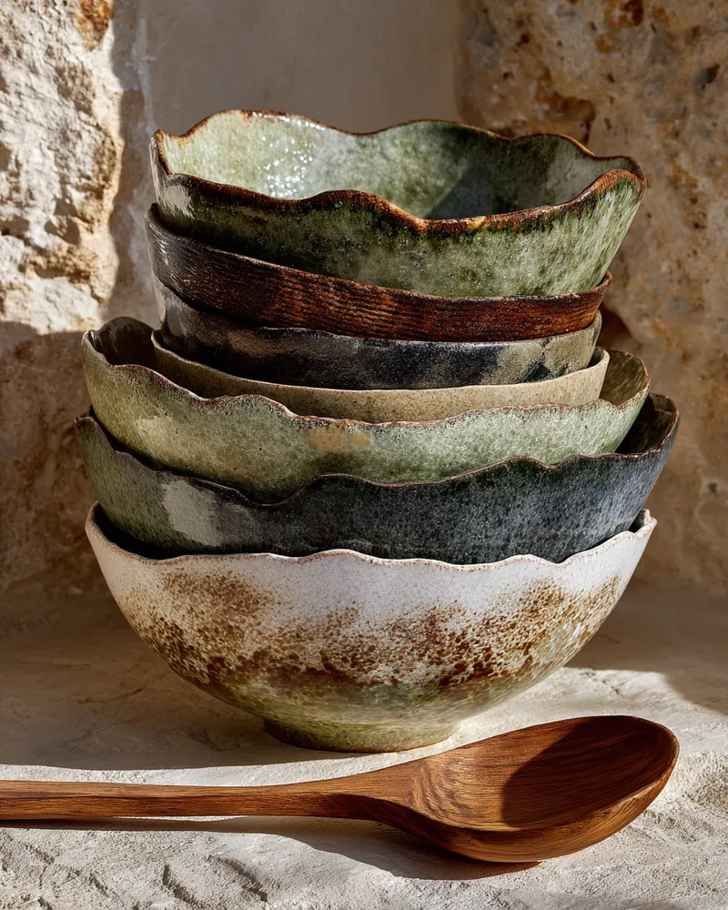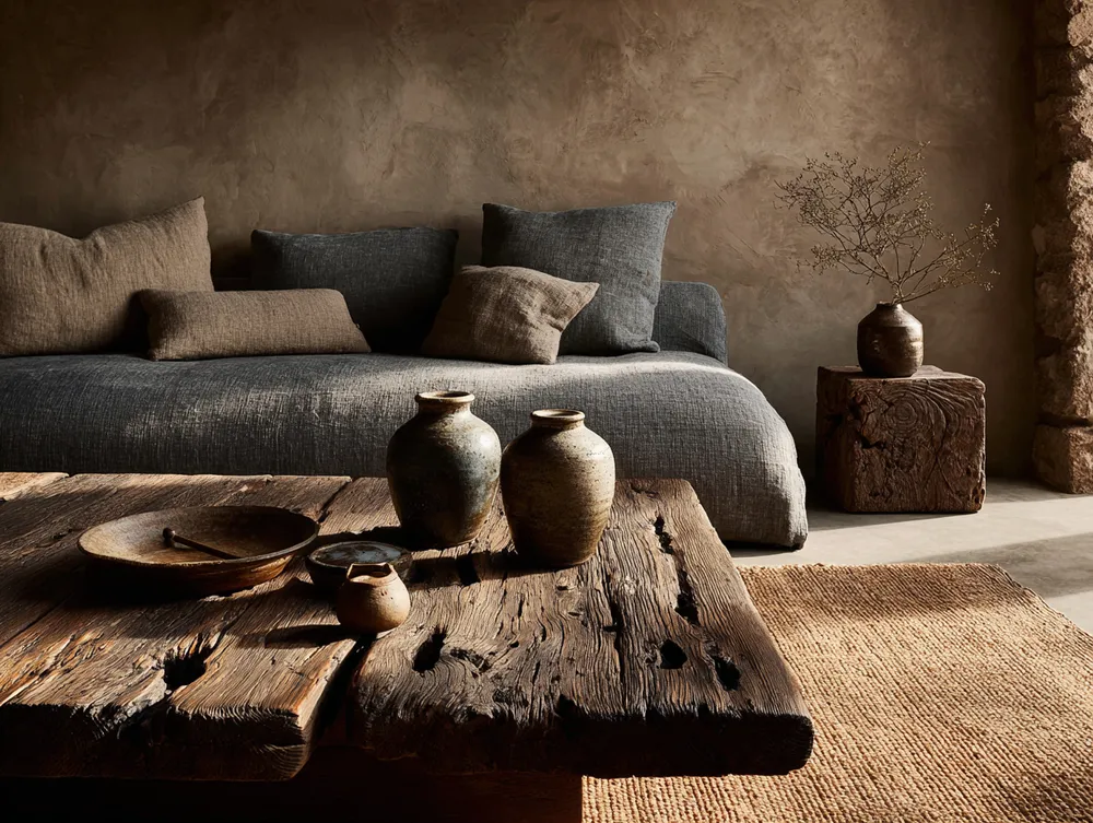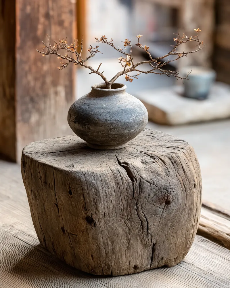 - **Natural Materials:** Earthenware ceramics, unpolished wood, natural stone.