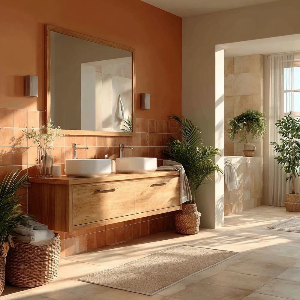 Transform your bathroom into a spa-like escape with the magic of earthy textures! ๐ฟ Embrace natural materials like bamboo, rattan, and unglazed terracotta. Think woven laundry baskets, a bamboo shelving unit, and handmade ceramic soap dispensers. Introduce warmth with a chunky knit bathmat and a simple wooden stool. Muted color palettes of beige, cream, and soft terracotta create a calming ambiance. Add a touch of life with a small plant like a fern. ๐ชด Your everyday routine can feel like a vacation! Save this for your bathroom inspo! #BathroomDecor#EarthyBathroomIdeas#TexturalDecor#BathroomIdeas#SpaLikeBathroom#NaturalMaterials#BohoBathroom#HomeDecorTips#RelaxingSpaces#TerracottaDecor#BambooDecor