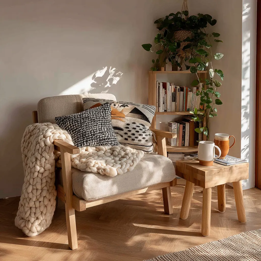 Create your perfect cozy corner blending Scandinavian simplicity with bohemian flair! 🇸🇪🧶 Embrace the 'Hygge' lifestyle with soft textures, warm lighting, and personal touches. Think a comfortable armchair piled with chunky knit blankets and layered pillows featuring global patterns. Add a small, minimalist side table from Scandinavia to hold a warm drink and a good book. A trailing plant or a simple dried flower arrangement brings nature indoors. 🌸 The goal is comfort, warmth, and happiness. Save this for your relaxation zone inspo! #ScandiBoho#ScandiBohoIdeas#HyggeCorner#CozyHomeIdeas#ReadingNook#BohoScandi#ScandinavianDecor#BohemianDecor#RelaxationStation#InteriorDesign#HomeInspo