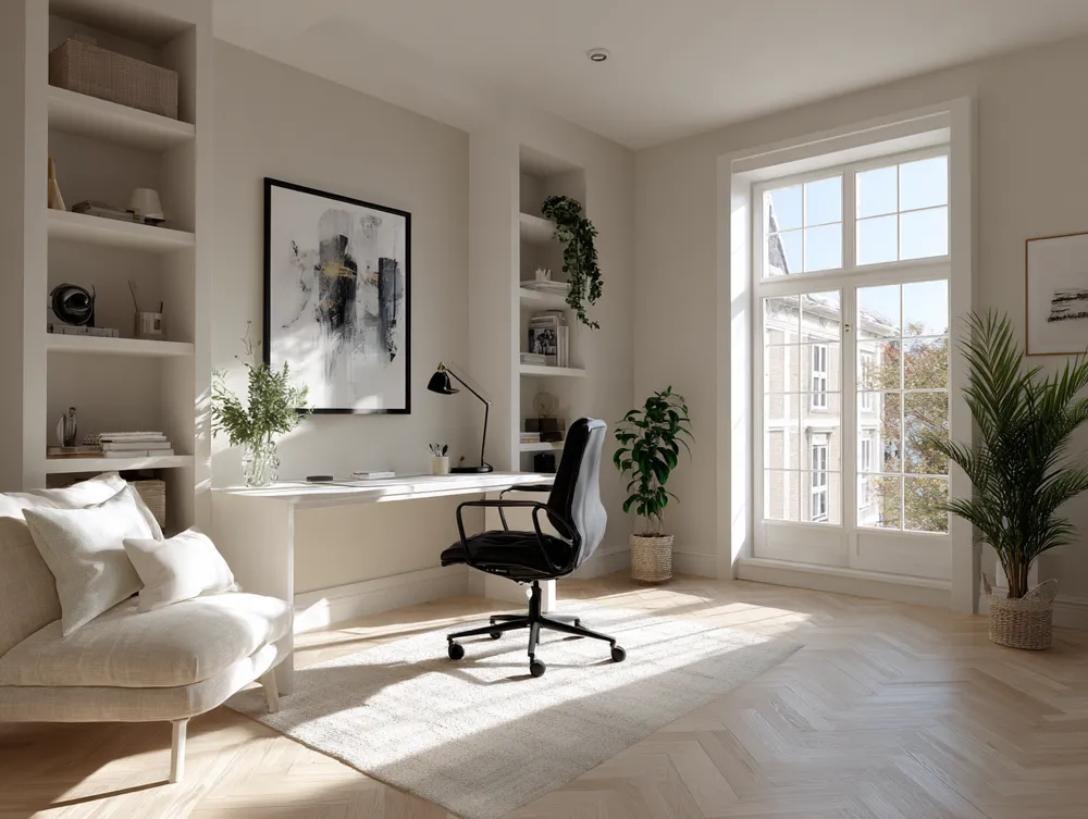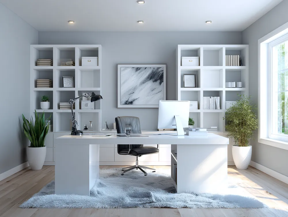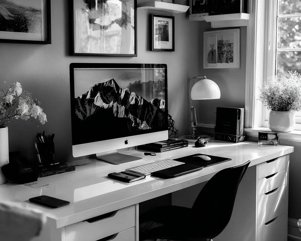 Chic Home Office: Monochromatic Serenity for Productivity ⚫⚪