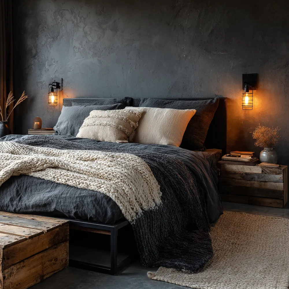 Cozy Industrial Bedroom Oasis: Get the Look! 🛌