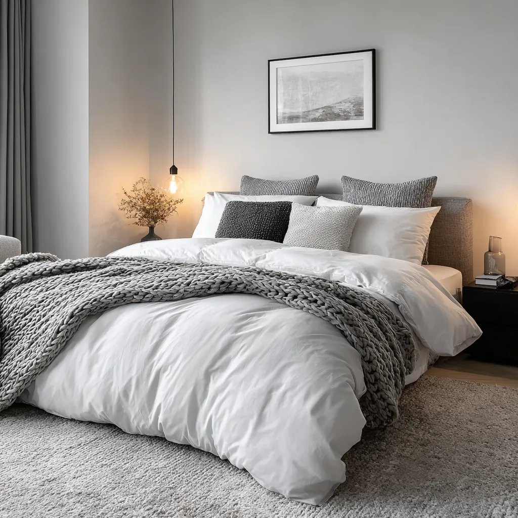 Monochromatic Bedroom Sanctuary: Sleep in Serene Style ☁️💫