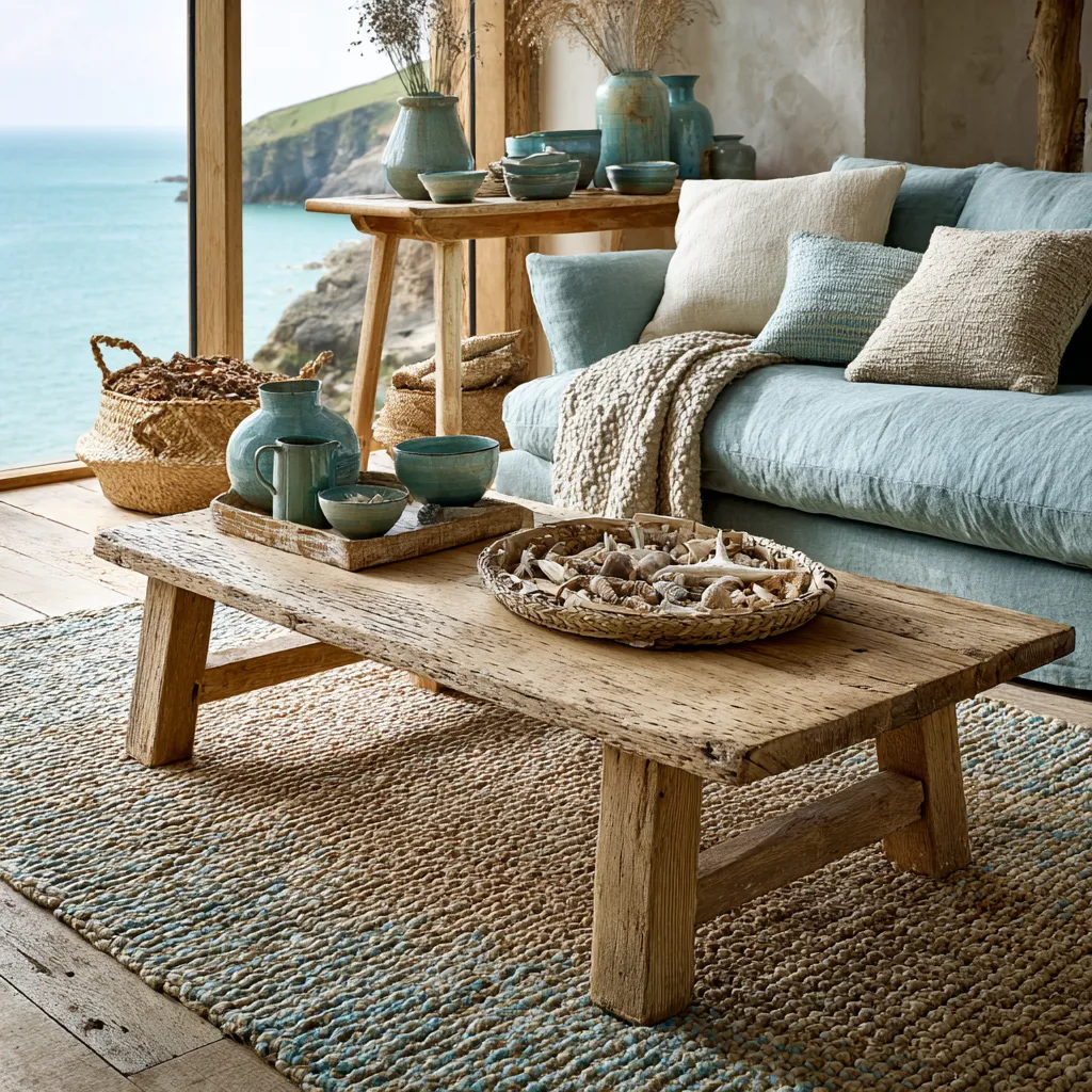 * **Nautical & Natural Accents:** Shells, driftwood, and coastal-inspired art can be complemented by unique finds like artisanal ceramic bowls or carved wooden birds.