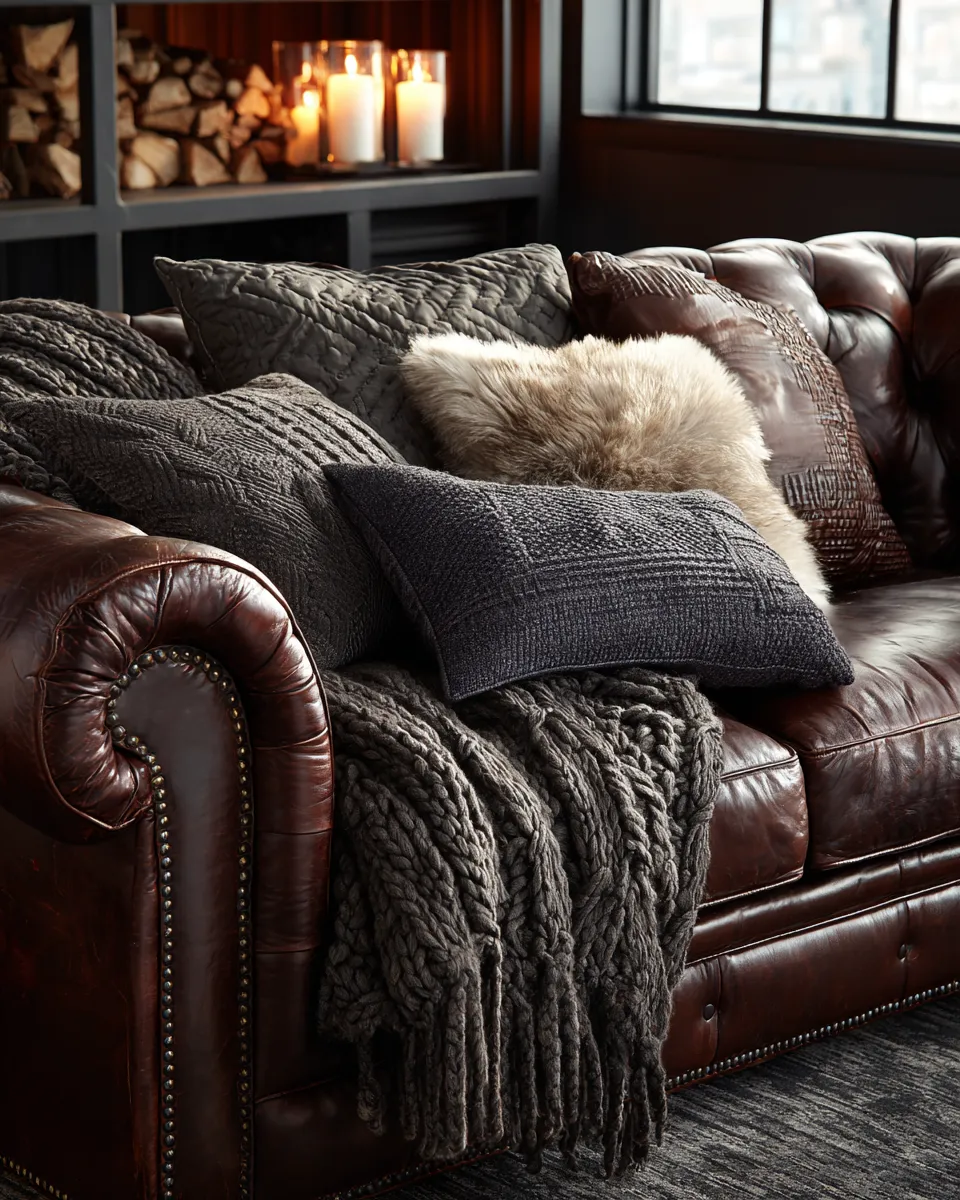 🛋️ Industrial Texture Play: Elevate Your Sofa Style