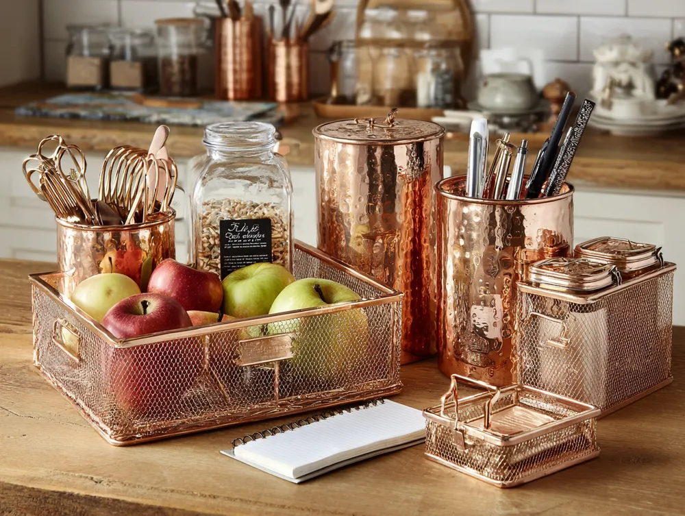 * **Lighting Charm:** Copper lamps or pendant lights.