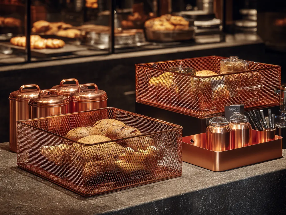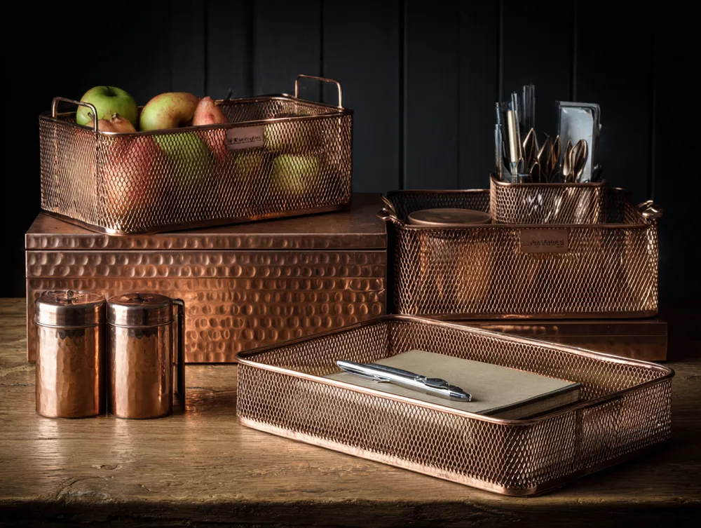 * **Textural Elements:** Copper candle holders, decorative bowls, or vases.