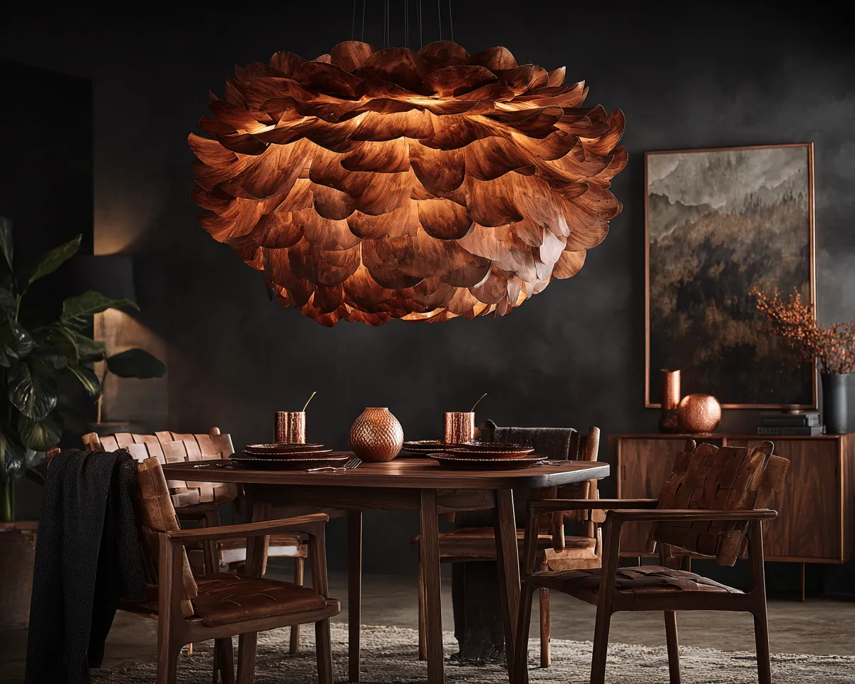 * **Statement Chandelier:** A sculptural copper pendant light over your dining table is a showstopper.