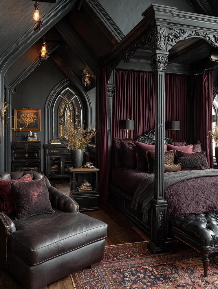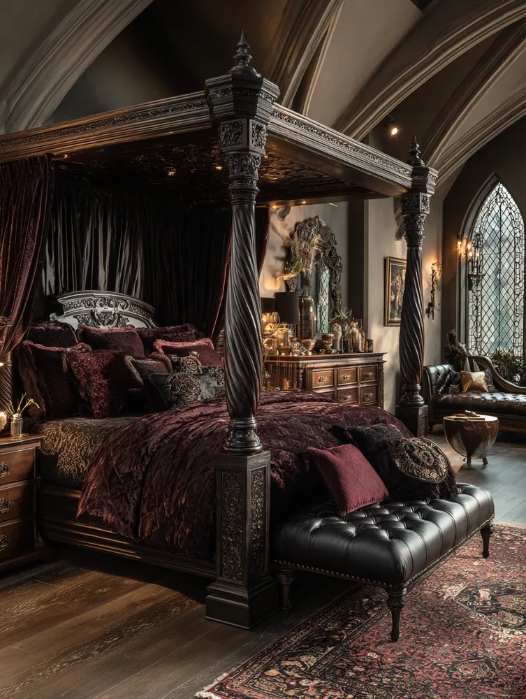 Transform your bedroom into a decadent escape with Gothic Revival flair. Think opulent fabrics, antique pieces, and a captivatingly dark aesthetic. 🖤