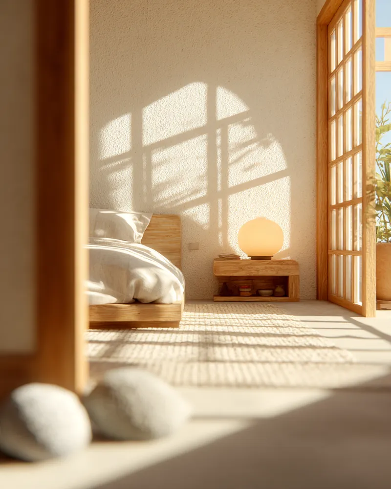 Embracing Shadows: The Art of Dynamic Light in Japanese-Inspired Bedrooms 😴💡