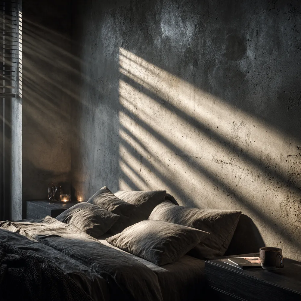 Mastering Mood: Shadow Play in Your Luxe Minimalist Bedroom 🖤