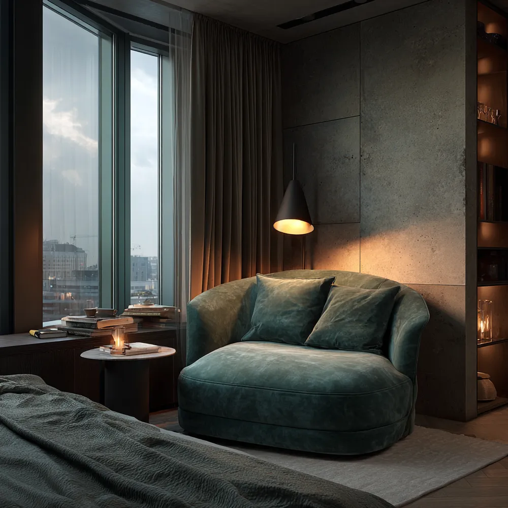Cozy Retreat: Dramatic Shadows in Your Bedroom Nook 🖤