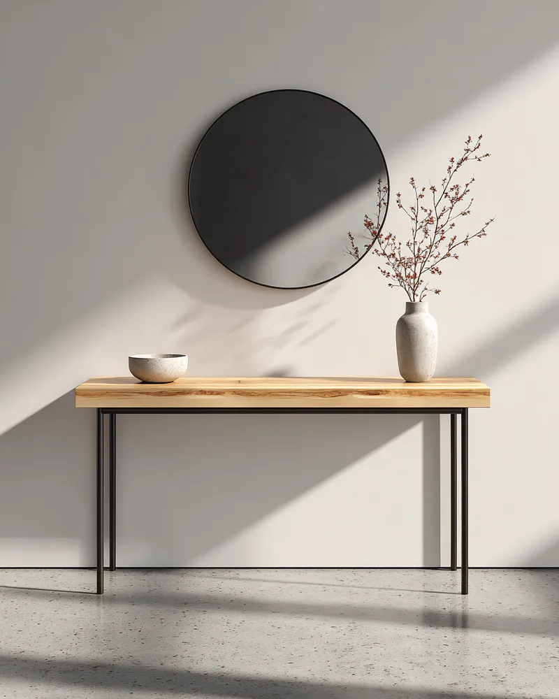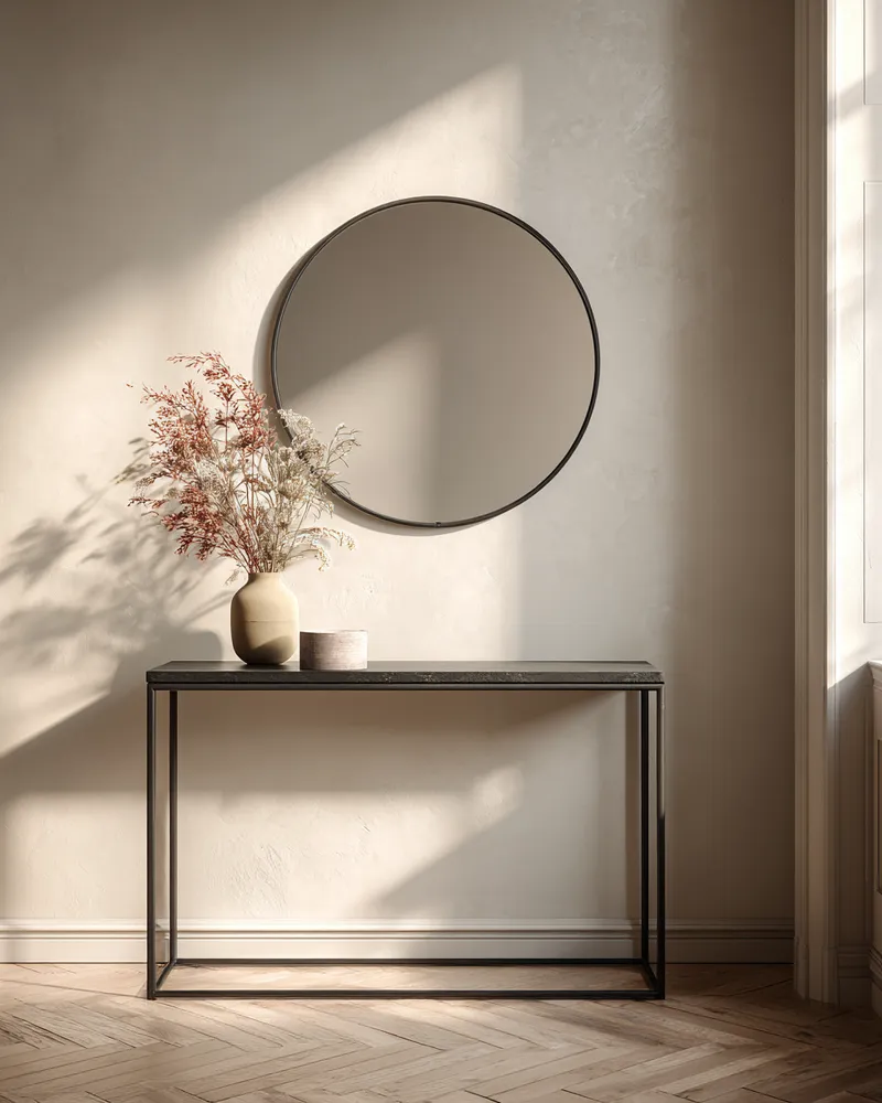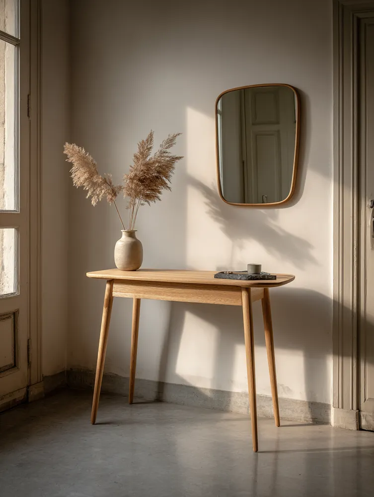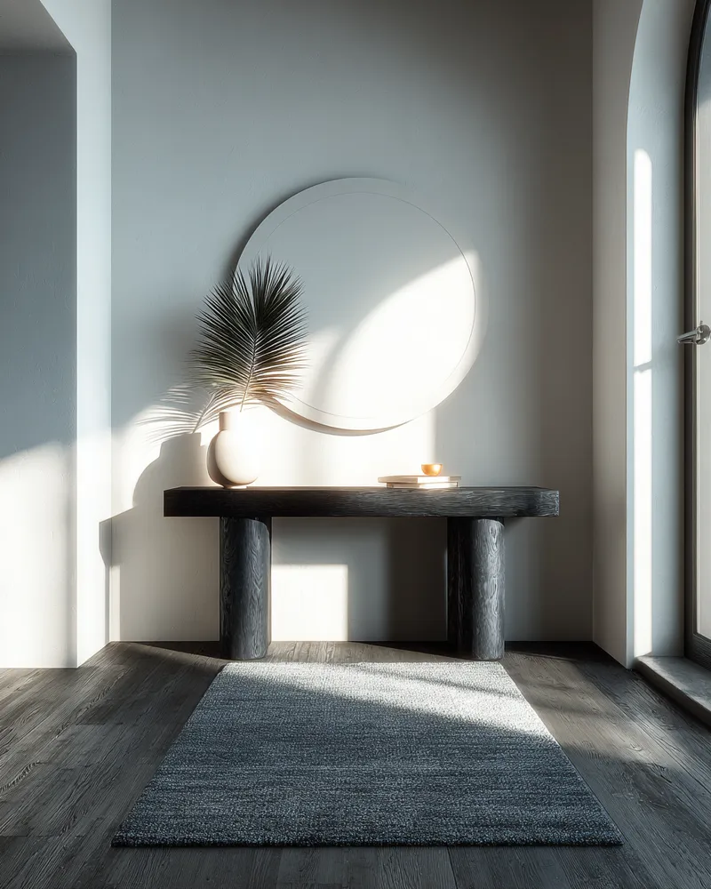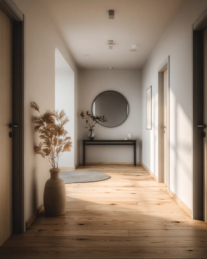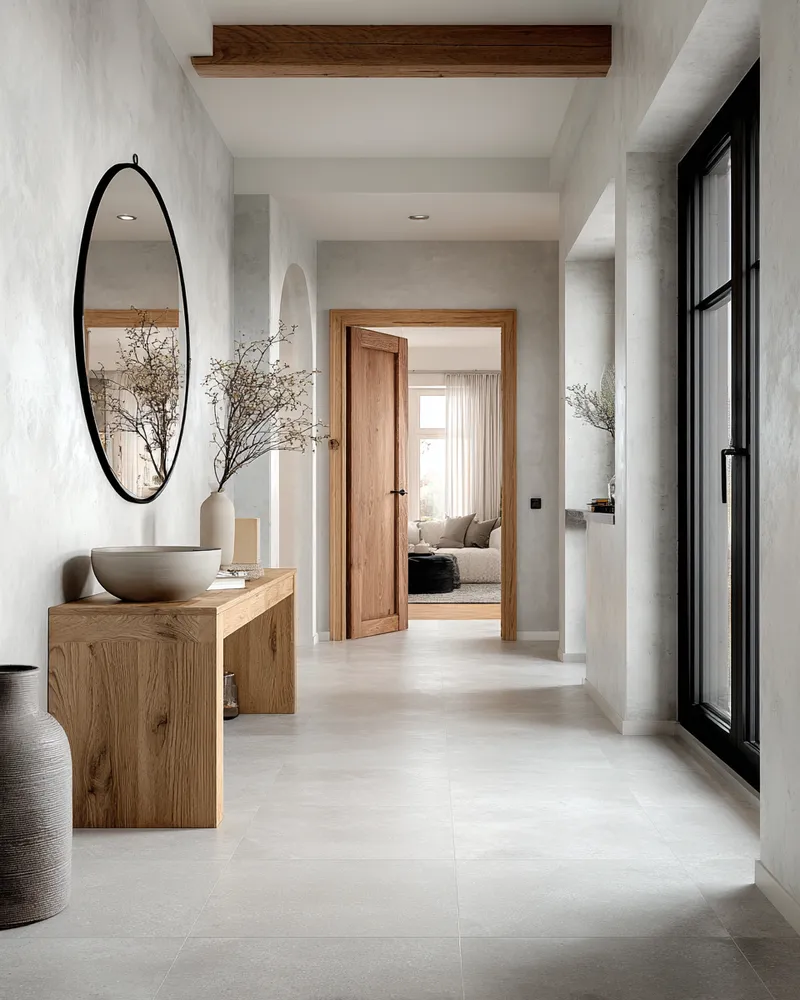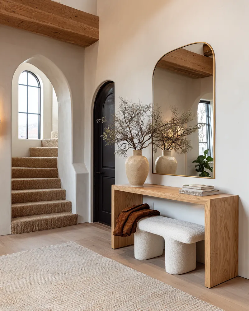 Your entryway is the first impression of your home, so let it radiate calm. Embrace minimalist principles with clean lines and essential pieces. A sleek console table in natural wood or a simple painted finish is ideal. 🤍 Incorporate a large mirror to enhance light and space. For decor, keep it minimal: a single sculptural vase or a few well-placed books. A functional yet beautiful doormat and a simple umbrella stand complete the look. The aim is a welcoming, uncluttered space that invites peace and order. #EntrywayIdeas#MinimalistEntryway#SereneSpaces#HomeDecorInspo#CalmHome#InteriorStyling#CleanDesign#WelcomingHome#FrontDoorStyle#HallwayDesign