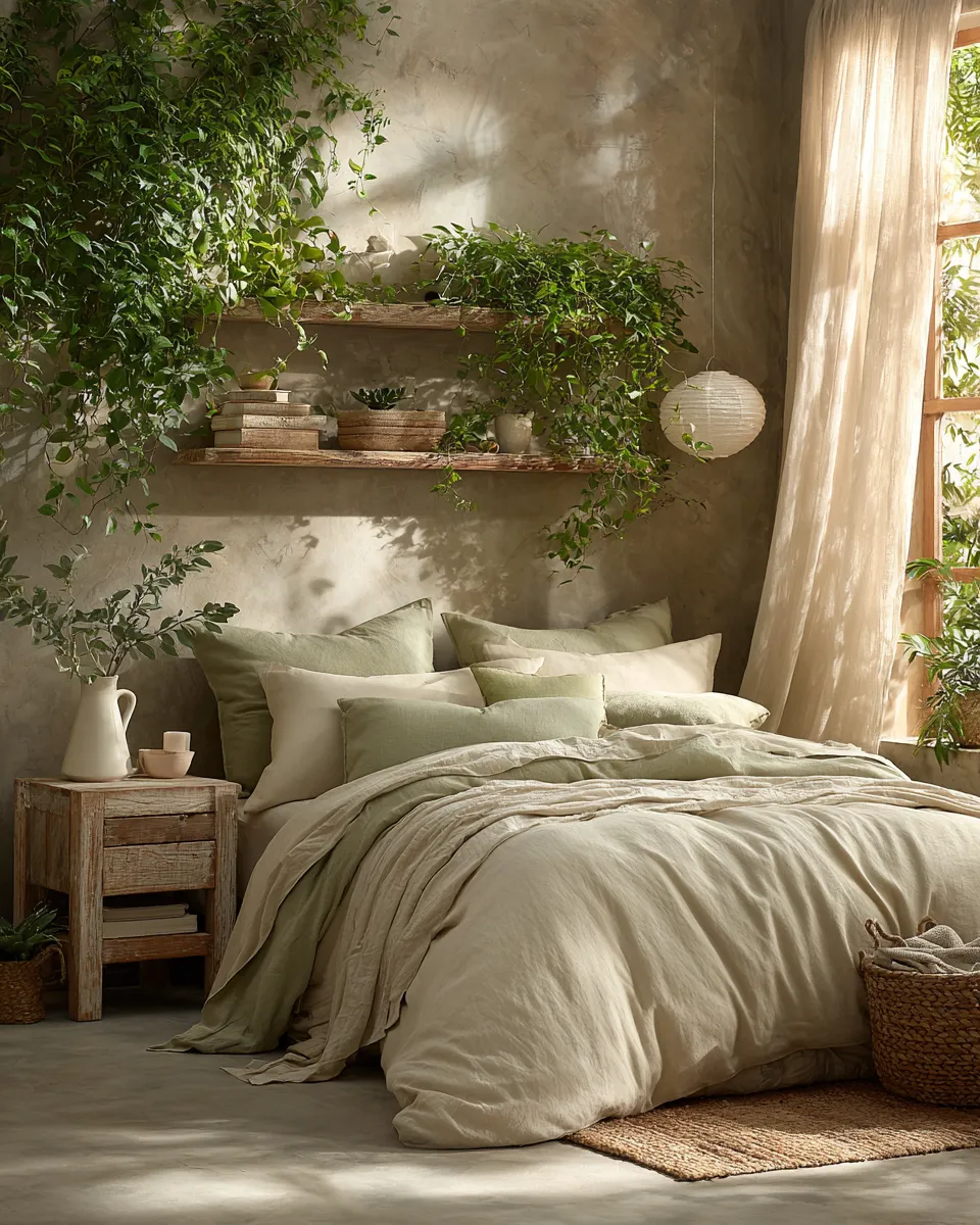 Design your dream sleep sanctuary. Save this for inspo! 🌙 #BiophilicBedroomIdeas#NatureSanctuaryIdeas#SereneBedroomIdeas#CalmingHomeIdeas#OrganicLivingIdeas#BedroomDecor#BiophilicDesign#InteriorInspo#NaturalHome#PeacefulSpaces