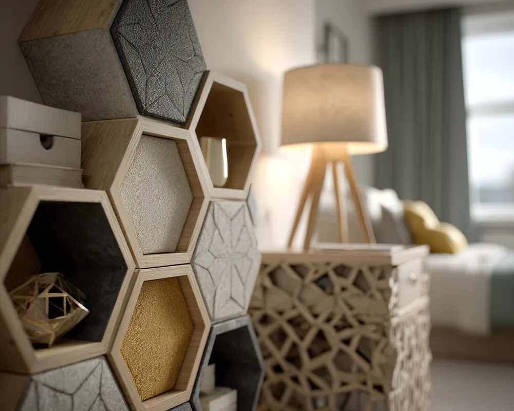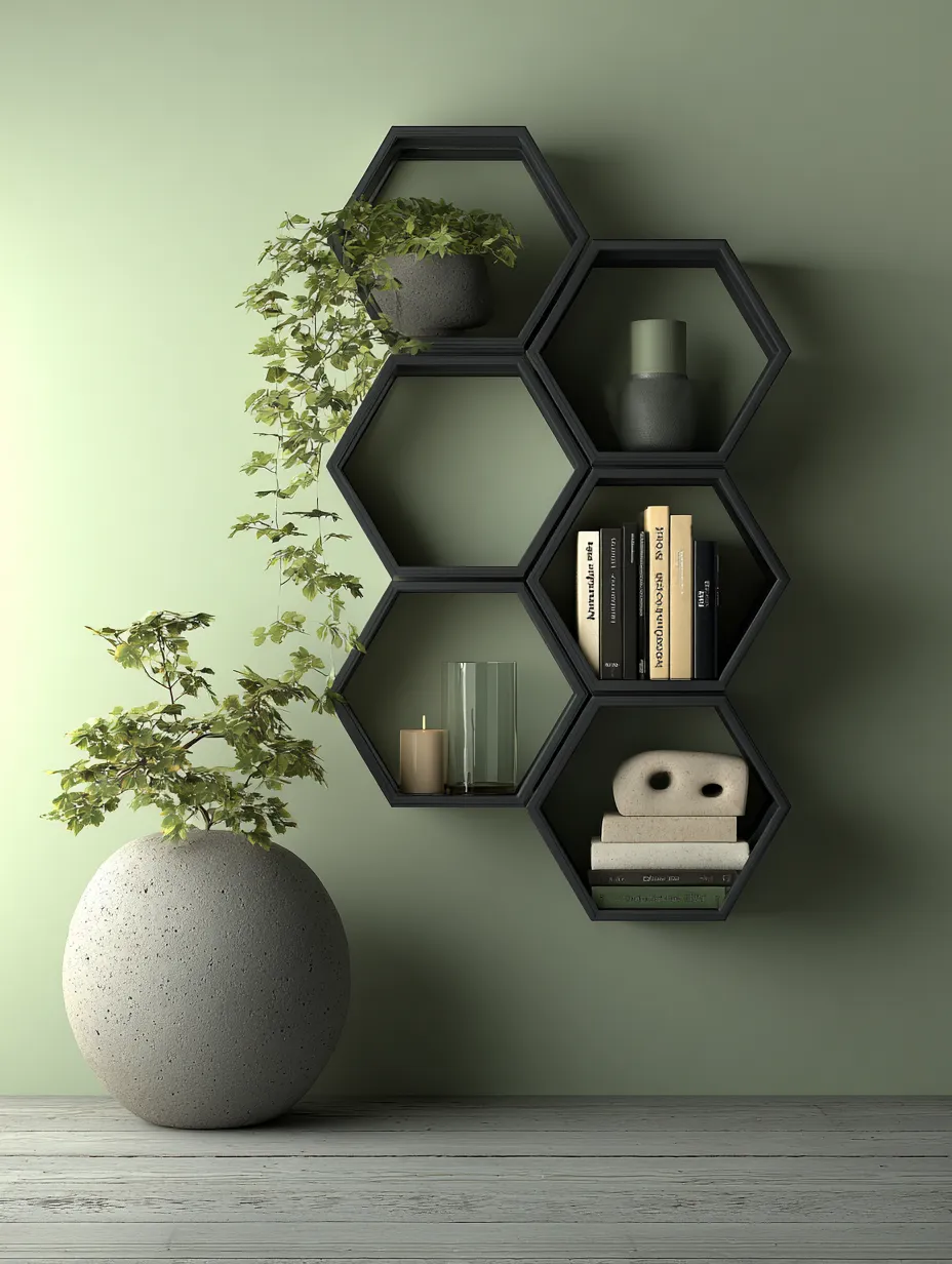 Let's elevate your walls beyond traditional shelves! Geometric shelving units offer a striking balance of functionality and artistic expression. 🔶 Whether it’s hexagonal units, interlocking squares, or unique angular arrangements, they create visual interest and define spaces. My 'Grounded Geometries' appreciate how these forms can house your treasured items while acting as a sculptural element themselves. They're perfect for displaying plants, books, and decorative objects, bringing order and intrigue to any room. What geometric shape inspires your walls? #GeometricShelfIdeas#WallArtShelvingIdeas#FunctionalDecorIdeas#UniqueWallIdeas#StructuredStorageIdeas#InteriorDesign#HomeDecor#ShelfStyling#ModernShelving#DecorInspo